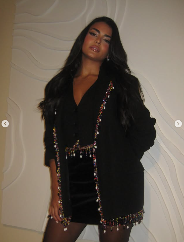 كانت إطلالة أسماء جلال محور الحديث في العرض الأول، حيث ارتدت بليزر مزين بشراشيب من الكريستالات والخرز الملون، بقيمة تصل إلى 50 ألف جنيه مصري. أكملت اللوك بفيست مطابق يبلغ سعره 22 ألف جنيه، مع تنورة قصيرة سوداء كلاسيكية تضفي توازنًا مثاليًا بين الجرأة والأناقة. الإجمالي للإطلالة بلغ 72 ألف جنيه، مما يعكس استثمارًا في الأزياء الفاخرة التي تتناسب مع شخصية نجمة صاعدة مثل أسماء جلال. هذه التفاصيل لم تأتِ عبثًا، بل أبرزت إطلالة أسماء جلال كواحدة من أبرز الإطلالات في موسم الأفلام الجديد، حيث أشاد الجمهور بقدرتها على التنسيق الذاتي الذي يجمع بين الترف والأسلوب الشخصي.