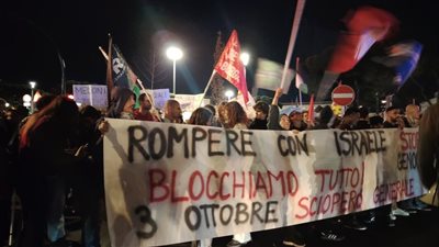 أما في إيطاليا، فقد دعت أكبر نقابة عمالية في البلاد إلى إضراب عام يوم الجمعة، احتجاجًا على الانتهاكات الإسرائيلية" بحق المتطوعين في أسطول الصمود واعتقال مئات الناشطين والبرلمانيين المشاركين في الأسطول.