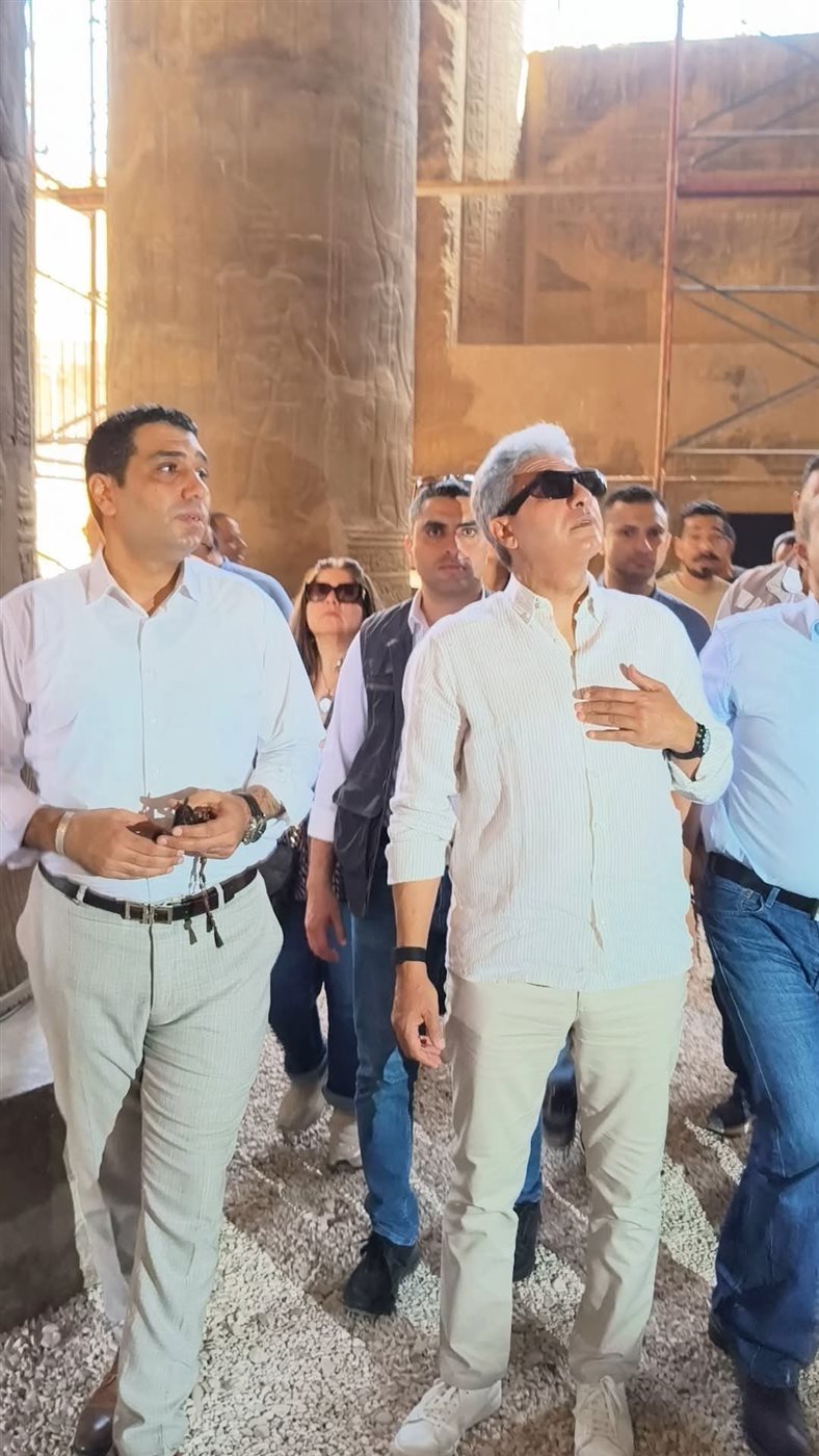 في مشهد لافت يجسد الاهتمام الرسمي بالتراث المصري، صعد الدكتور شريف فتحي وزير السياحة والآثار صباح اليوم الجمعة إلى السقالة الخاصة بأعمال الترميم بمعبد إسنا جنوب الأقصر، ليتابع بنفسه عن قرب جهود المرممين المصريين في إعادة إحياء النقوش والجداريات الفريدة داخل المعبد.