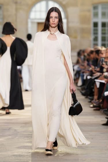 ومن أبرز محطات العرض فستان تي-شيرت حريري تتوسطه مثلثات هندسية، وفستان عاجي بكنزة قصيرة وتنورة زغبية قدّم رؤية جديدة للنحت من خلال النعومة.