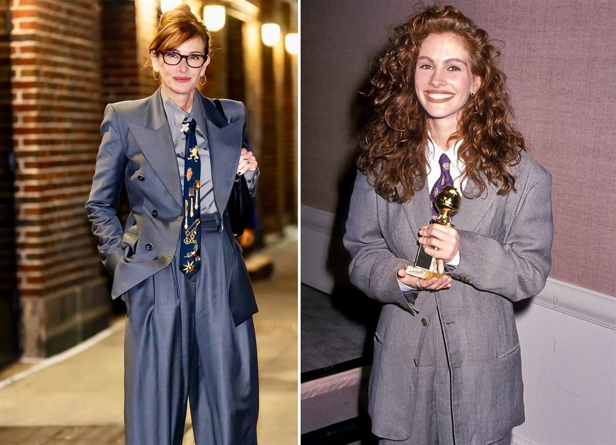 خطفت جوليا روبرتس الأنظار هذا الأسبوع، بإطلالة تشبه إلى حد كبير البدلة الرمادية الداكنة التي ارتدتها في حفل غولدن غلوب عام 1990 من توقيع جورجيو أرماني، والتي تحولت منذ ذلك الحين إلى أيقونة في عالم الموضة.