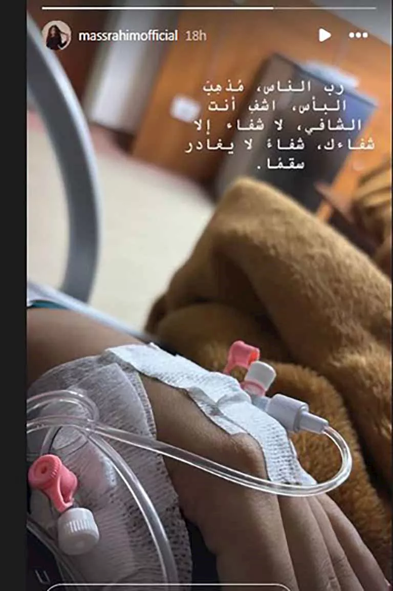 وكانت ماس رحيم، نشرت صورتها من داخل المستشفى عبر حسابها بموقع إنستجرام، وعلقت: رب الناس، مذهب البأس، اشفِ أنت الشافي، لا شفاء إلا شفاؤك، شفاء لا يغادر سقمًا، وسط تمنيات بالشفاء من متابعيها.