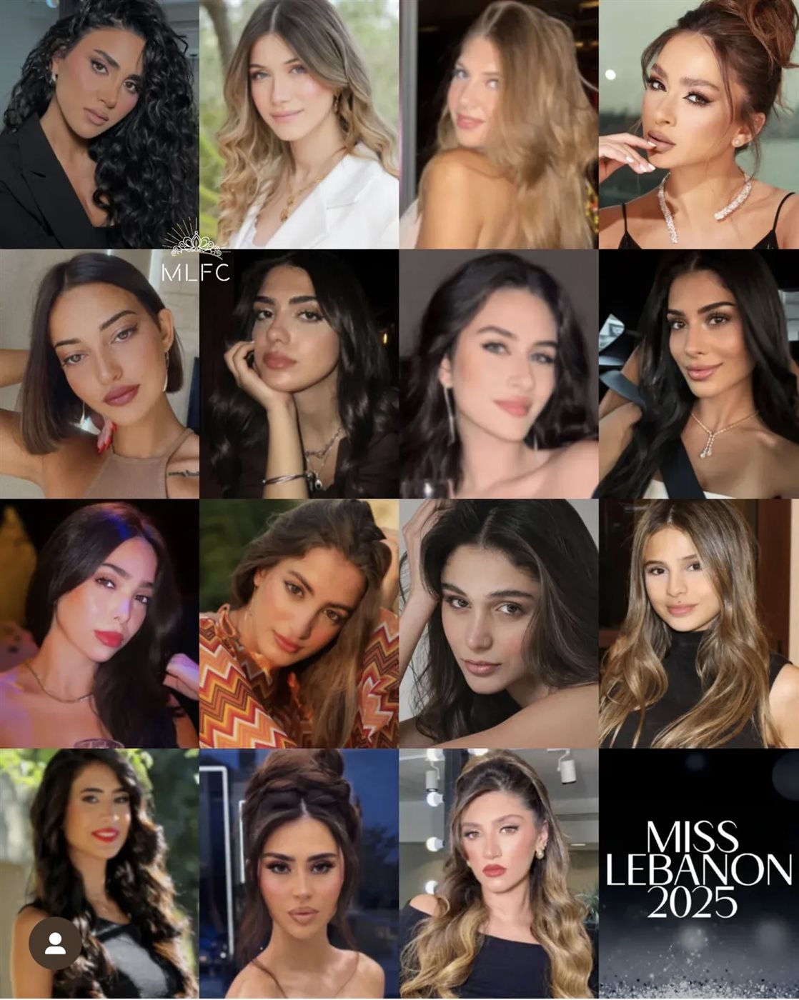 وعلقت الصفحة على الصور بالمنشور التالي: "تعرّفوا على الدفعة الكاملة (تقريبًا) من ملكة جمال لبنان 2025. 15 من أصل 16 متسابقة في الصورة هنا-
