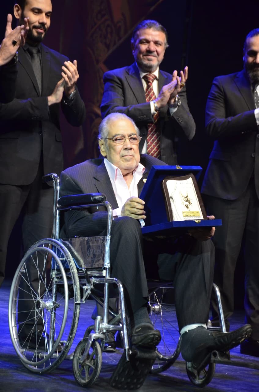 بعد ذلك صعد أعضاء مجلس نقابة المهن التمثيلية بالكامل إلى المسرح ليشاركوا في تقديم دروع التكريم، لثلاثة من كبار النجوم هم الفنان صبري عبد المنعم الذي دخل إلى المسرح على كرسي متحرك ونال الكثير من التصفيق، وكلمات المحبة،