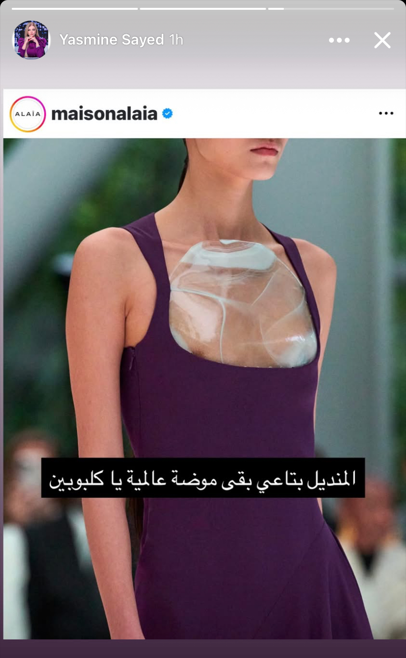 على هامش أسبوع الموضة في باريس علقت الإعلامية ياسمين الخطيب، ساخرة على ترند المنديل التي ظهرت به منذ أسابيع وتصدرت خلاله الترند.
