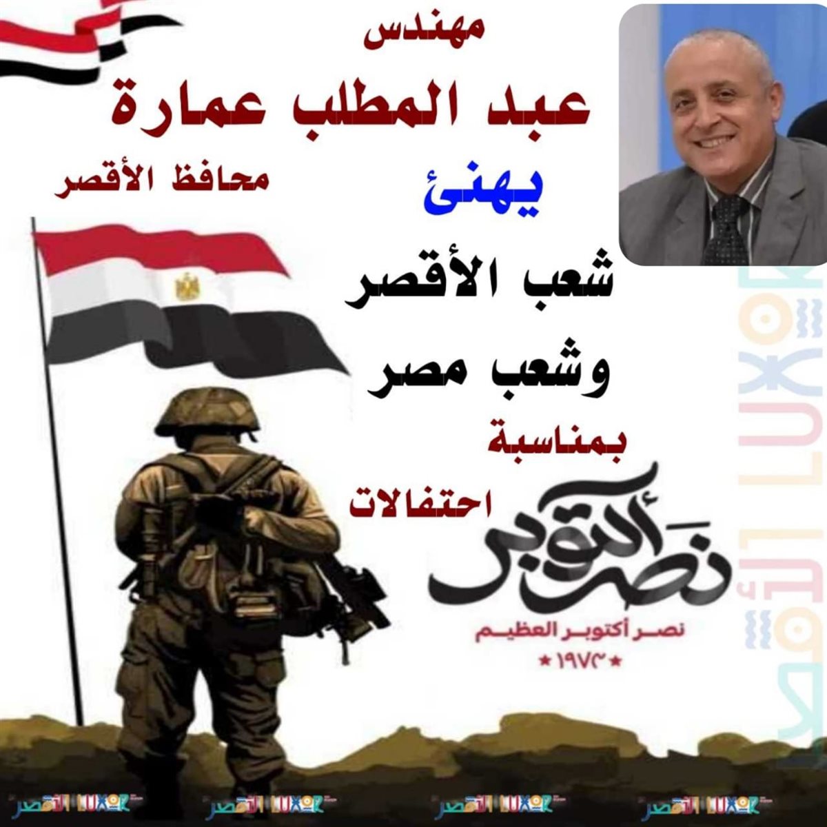 قدّم المهندس عبد المطلب عماره، محافظ الأقصر، خالص التهنئة إلى أبناء محافظة الأقصر ، بمناسبة الاحتفال بالذكرى الثانية والخمسين لانتصارات السادس من أكتوبر المجيدة، التي ستظل رمزًا للفخر والعزة والكرامة للشعب المصري وجيشه الباسل.