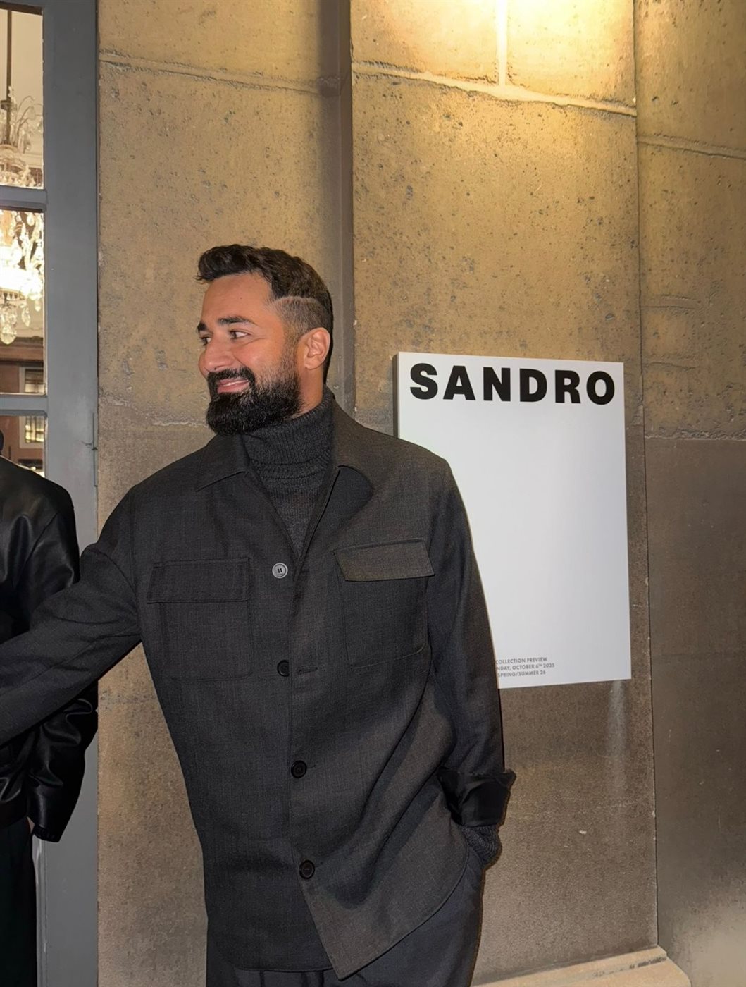 وقد تألق حاتم بإطلالة كاملة من أحدث تصاميم ساندرو، مجسّدًا روح المجموعة التي تمزج بين الجرأة والرقي والرؤية المستقبلية.