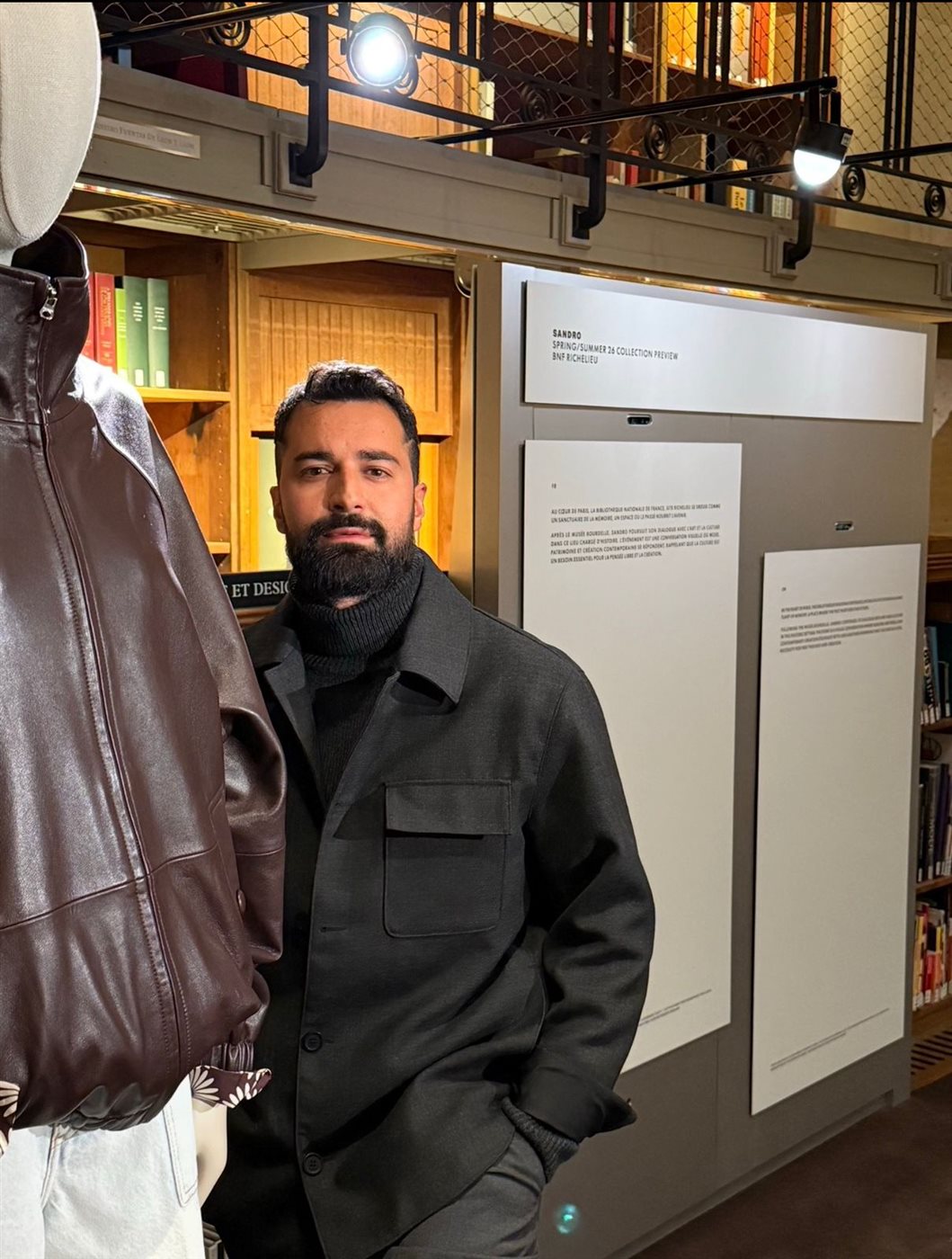 وقد أُقيم الاستعراض للمجموعة الموسمية في موقع استثنائي هو المكتبة الوطنية الفرنسية – ريشليو (BNF Richelieu)، حيث شكّل المكان خلفية فاخرة لعرض مجموعة ساندرو التي تحتفي بالتفصيل العصري، والأناقة الباريسية، والرقي البسيط. وأضفى أحمد حاتم، المعروف بأعماله الفنية المتميزة في السينما والتلفزيون على مستوى العالم العربي، حضورًا ثقافيًا لافتًا ولمسة عصرية مميزة إلى هذا العرض.