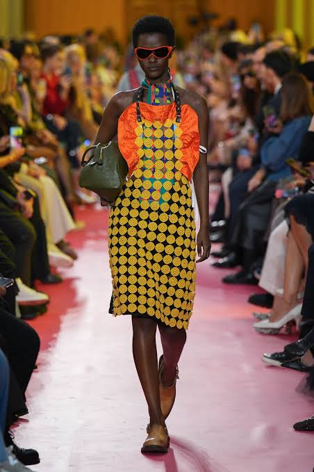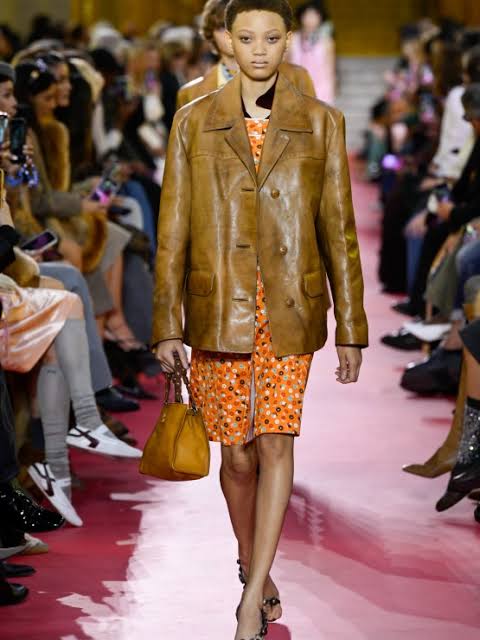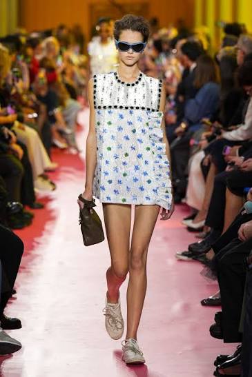 قدّمت "برادا" مجموعة مميزة ومبهرة في باريس، ولم يقتصر الأمر على حقائب البلاط من القرن الثامن عشر، بل شمل أيضاً مآزر العاملات التي صمّمتها بطريقة عصرية مبتكَرة وبألوان مبهرة. وتقول عن تصاميمها: "نحن في عالم الموضة نتحدث دائماً عن الأناقة المرتبطة بالأغنياء، لكن علينا أن ندرك أيضاً أن الحياة صعبة للغاية. وبالنسبة إليّ، تعكس المآزر معاناة النساء عبر التاريخ، من المصانع إلى المنازل".