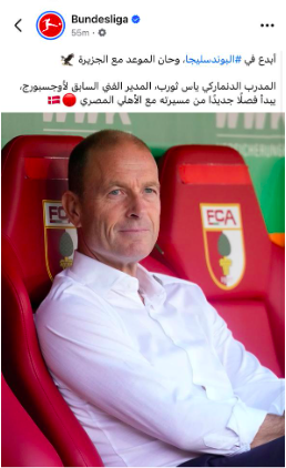 ونشرت الصفحة تغريدة جاء فيها: “أبدع في البوندسليجا، وحان الموعد مع الجزيرة.. المدرب الدنماركي ياس ثورب، المدير الفني السابق لأوجسبورج، يبدأ فصلًا جديدًا من مسيرته مع الأهلي المصري.”