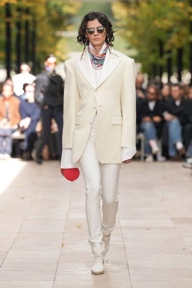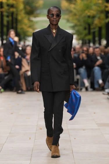القصّات حافظت على حدّتها وأناقتها النحيلة، حيث جاءت السترات الرجالية بمقاسات دقيقة تبرز الخصر بخفّة، لتُنسَّق مع سراويل ضيّقة أو جينز مشدود عند الساقين، تنتهي عند الكاحل بما يوحي بالحركة والانطلاق. في هذا الحوار بين الصرامة والعفوية، ظهرت البدلات الرسمية وقد خفّف من حدّتها ياقة مفتوحة، والقصمان الرياضية التقليدية أُعيد ابتكارها بلمسات حرير مرن، فيما تحوّلت قمصان البولو إلى رمز يجمع بين التراث والحداثة.
