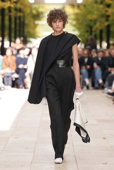 اللافت أنّ رايدر لا يكتفي بالتوازن بين الذكورة والأنوثة، بل يجرؤ على إدخال جرعات من اللعب في خضم هذا البناء الدقيق. فإلى جانب البذلات الصارمة، رأينا فساتين قصيرة بملمس البوكليه أو مزدانة بطبعات زهرية، تحمل الثقة نفسها التي يفرضها معطف طويل. أما التفاصيل الأكثر إثارة للنقشاش، فجاءت في صورة خوذات دراجات هوائية ممهورة بشعار سيلين، إكسسوار غير متوقّع يلتقط يوميات الباريسيين. هذا التفصيل بدا معاصراً أكثر منه ساخراً، وكأنه يردم الفجوة بين الرفاهية والاستخدام العملي.
