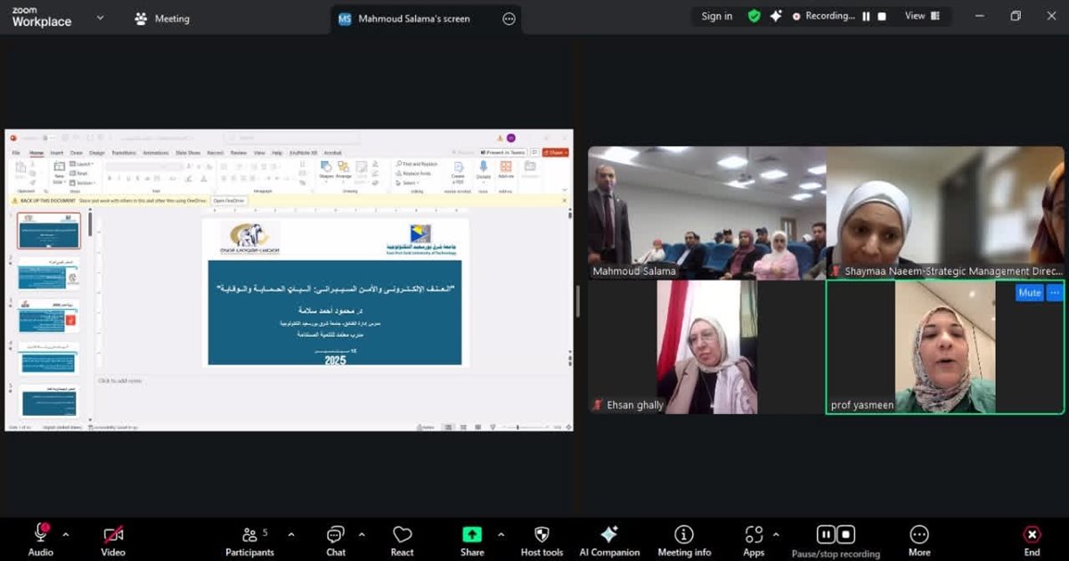 كما تضمنت الورشة محاضرات علمية حول الأمن السيبراني وأساليب الوقاية الرقمية، إلى جانب مناقشة سُبل مواجهة الأخبار الكاذبة والتشهير الإلكتروني، ودور الأسرة في الحماية وبناء الثقة، وأهمية دور الشباب المتطوعين في دعم جهود التوعية.