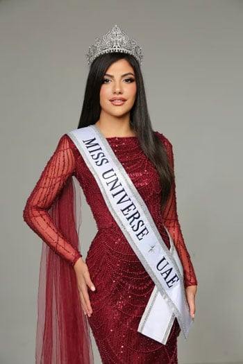 - مريم محمد أول إماراتية في مسابقة ملكة جمال الكون تبلغ من العمر 26 عامًا وهي ابنة بيئة إماراتية تحافظ على التقاليد.
