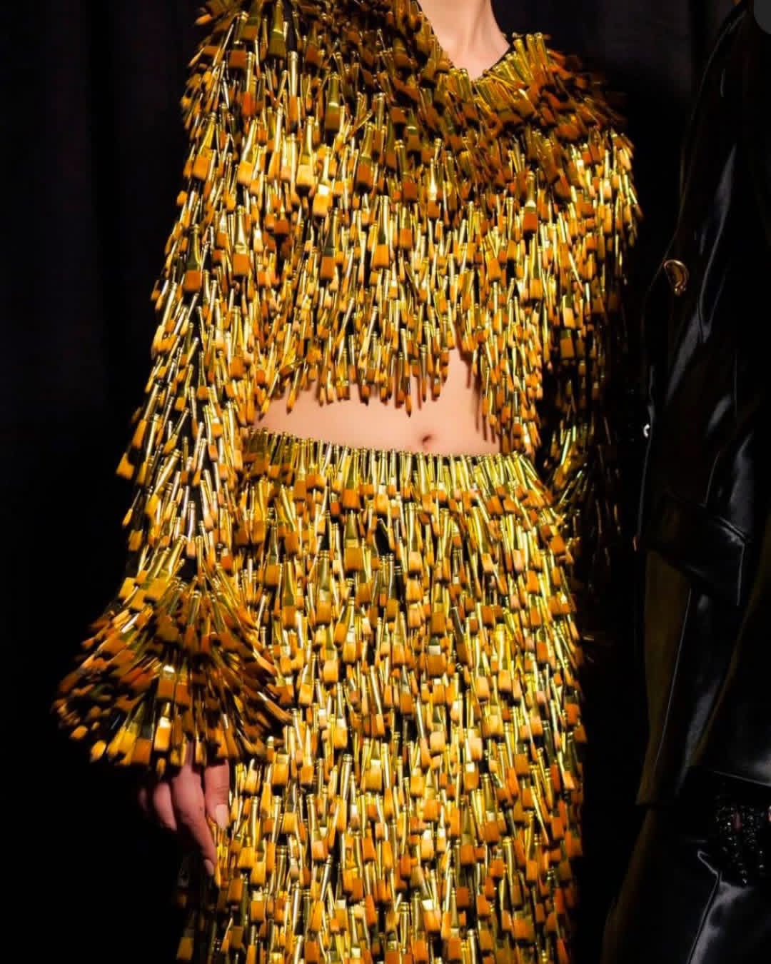 ولا يزال الفستان النحاسي الذي قدّمته دار سكياباريلي Schiaparelli للألبسة الجاهزة لموسم ربيع/صيف 2026 خلال أسبوع الموضة في باريس، من أغرب القطع التي قدمت لهذا الموسم، بسبب ابتكاره الفريد والبعيد عن المواد التقليدية التي تستخدم عادة في صناعة الأزياء.