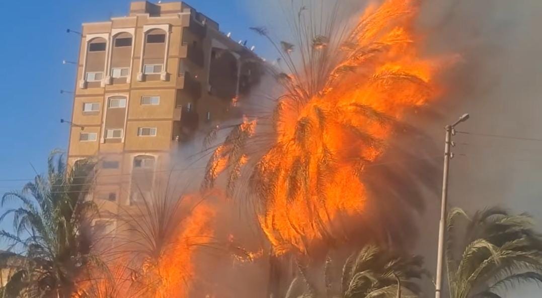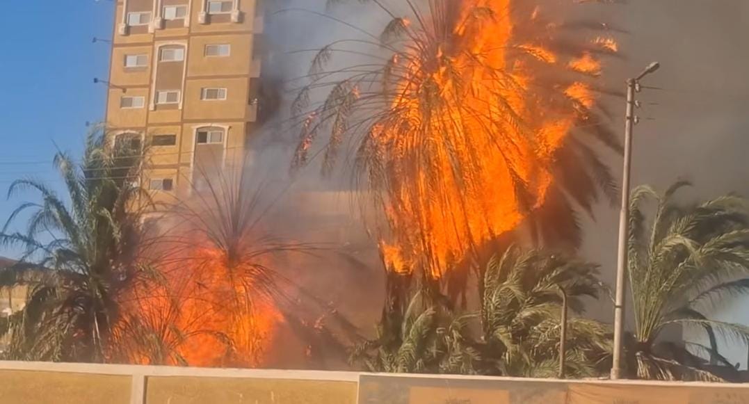 نشوب حريق هائل في أشجار النخيل بجوار محطة قطارات قنا |صور