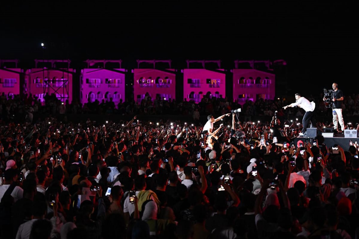 أحيا الفنان تامر حسني وعفروتو حفلا غنائيا داخل بولوتانو ببورتو السخنة ، حيث ظهر تفاعل الجمهور مع الثنائي .