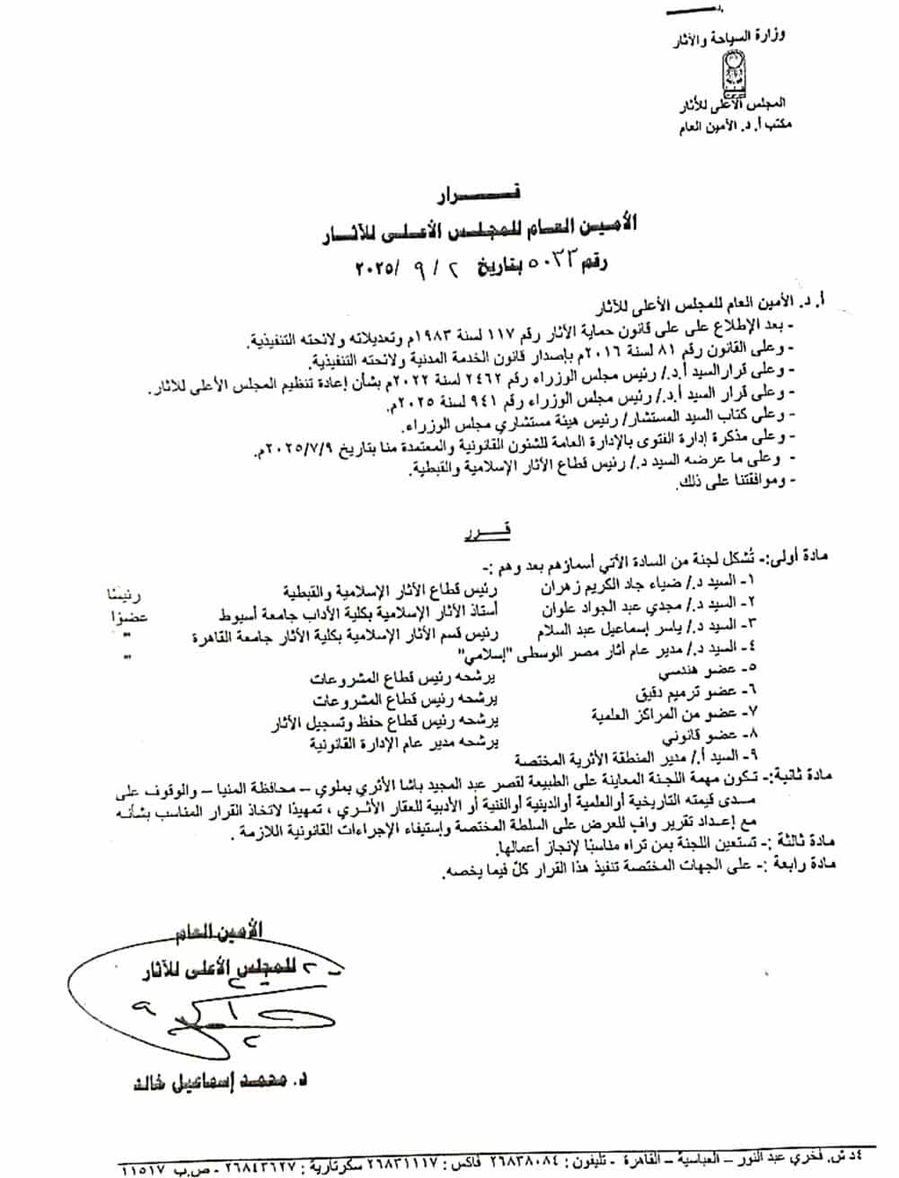 وأكد المصدر أن الأثر مسجل منذ عام، 2002م، إبان حكومة الدكتور عاطف عبيد، وتم نشر القرار في الجريدة الرسمية، فما الداعي لبحث حالة أدبية وتاريخية وفنية لأثر بالفعل تم تسجيله.