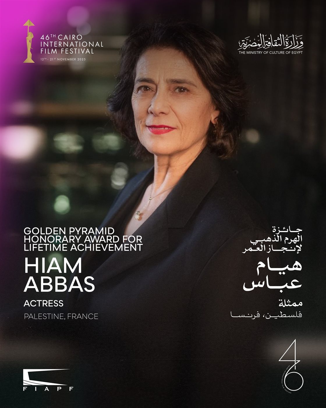 تُمنح جائزة الهرم الذهبي التقديرية لإنجاز العمر هذا العام للفنانة الفلسطينية الفرنسية هيام عباس، ضمن فعاليات الدورة السادسة والأربعين من مهرجان القاهرة السينمائي الدولي، تقديرًا لمسيرتها الغنية وإسهاماتها المتميزة في السينما العالمية.
