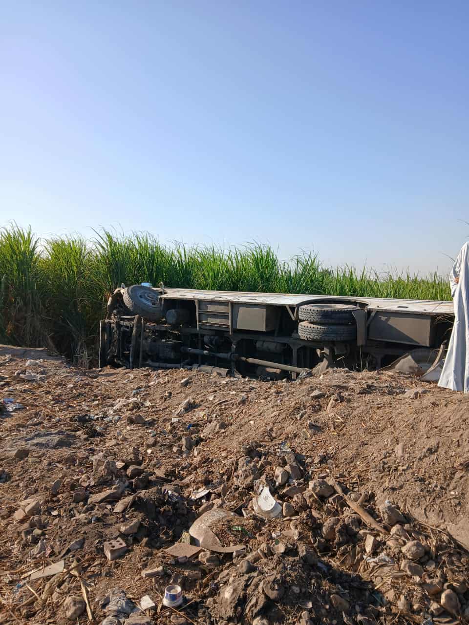 حصلت “نيوز رووم”علي أول صور لحادث موقع انقلاب أتوبيس عمال مصنع الألومنيوم بمدينع نجع حمادي، شمال قنا.