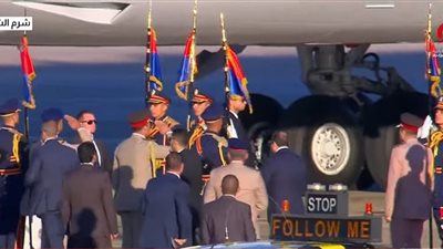 المشهد تزامن مع تحليق تشكيل جوي من مقاتلات "F-16" المصرية في سماء شرم الشيخ، ضمن مراسم الاستقبال الرسمي التي نُظّمت على أعلى مستوى.