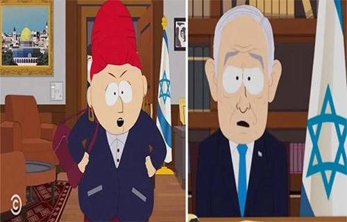 وجه مسلسل "ساوث بارك" الكارتوني الشهير، سهام نقده لرئيس وزراء حكومة الاحتلال بنيامين نتنياهو، بحيث جاء على لسان إحدى الشخصيات، وهي عجوز يهودية أميركية، في الحلقة الخامسة: "إنك تقتل الآلاف وتمحو أحياء بأكملها، ثم تتخذ من اليهودية درعاً يحصنك من الانتقاد".
