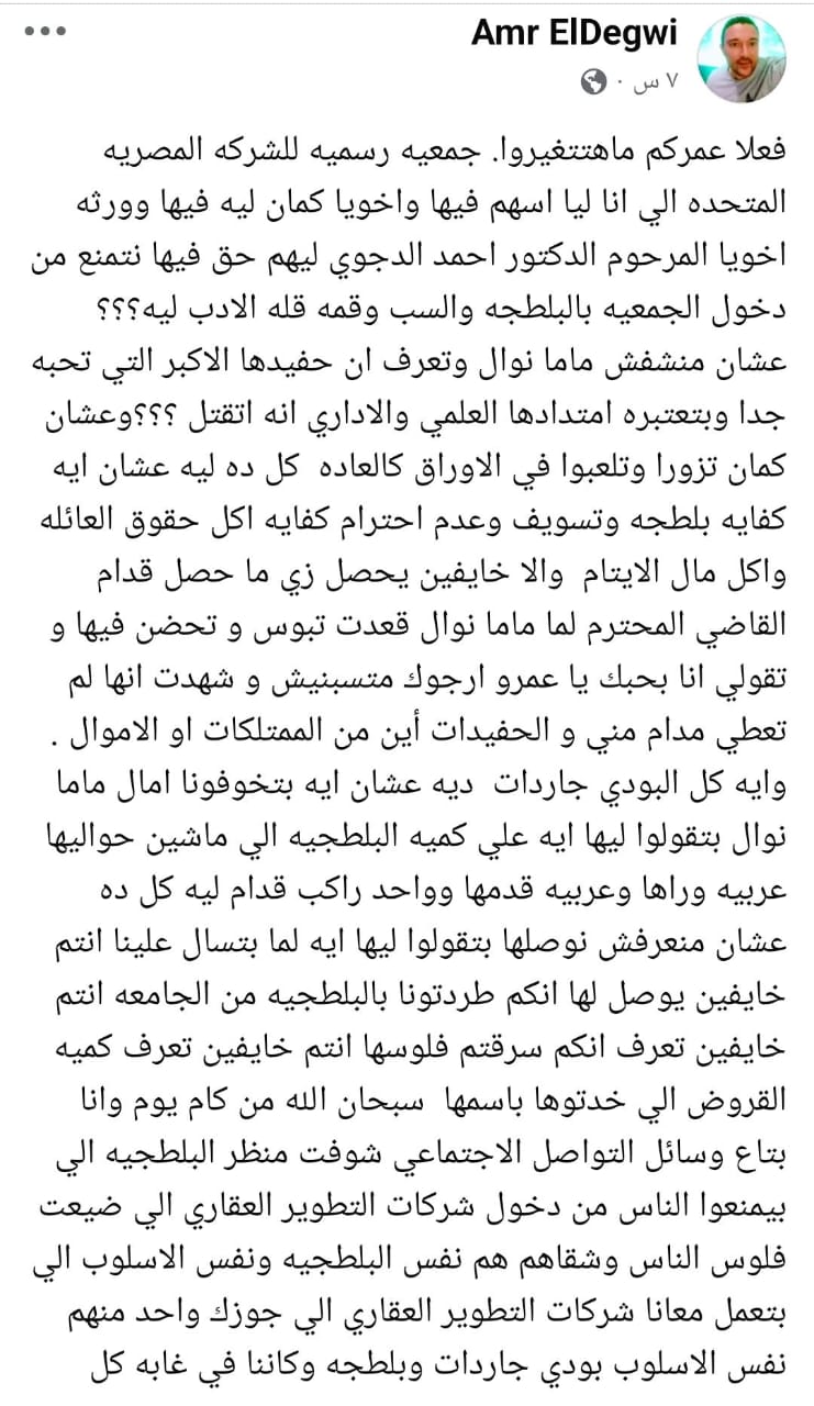 "مش هسيب حقي".. عمرو الدجوي يحرر محضرًا ضد ابنتي عمته