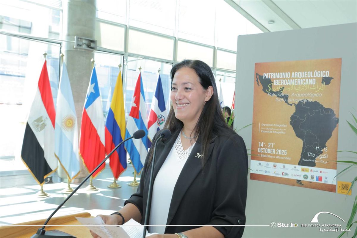رحبت الأستاذة هبة الرافعي بسفراء الدول الإيبروأمريكية وممثلي البعثات الدبلوماسية والحضور في افتتاح النسخة الخامسة من المعرض بمكتبة الإسكندرية، لافتة إلى أن المعرض يمثل جسرًا جديدًا للتواصل قائم على التراث الأثري المشترك الذي يصل الثقافات الإيبروأمريكية بالإرث الحضاري المصري.