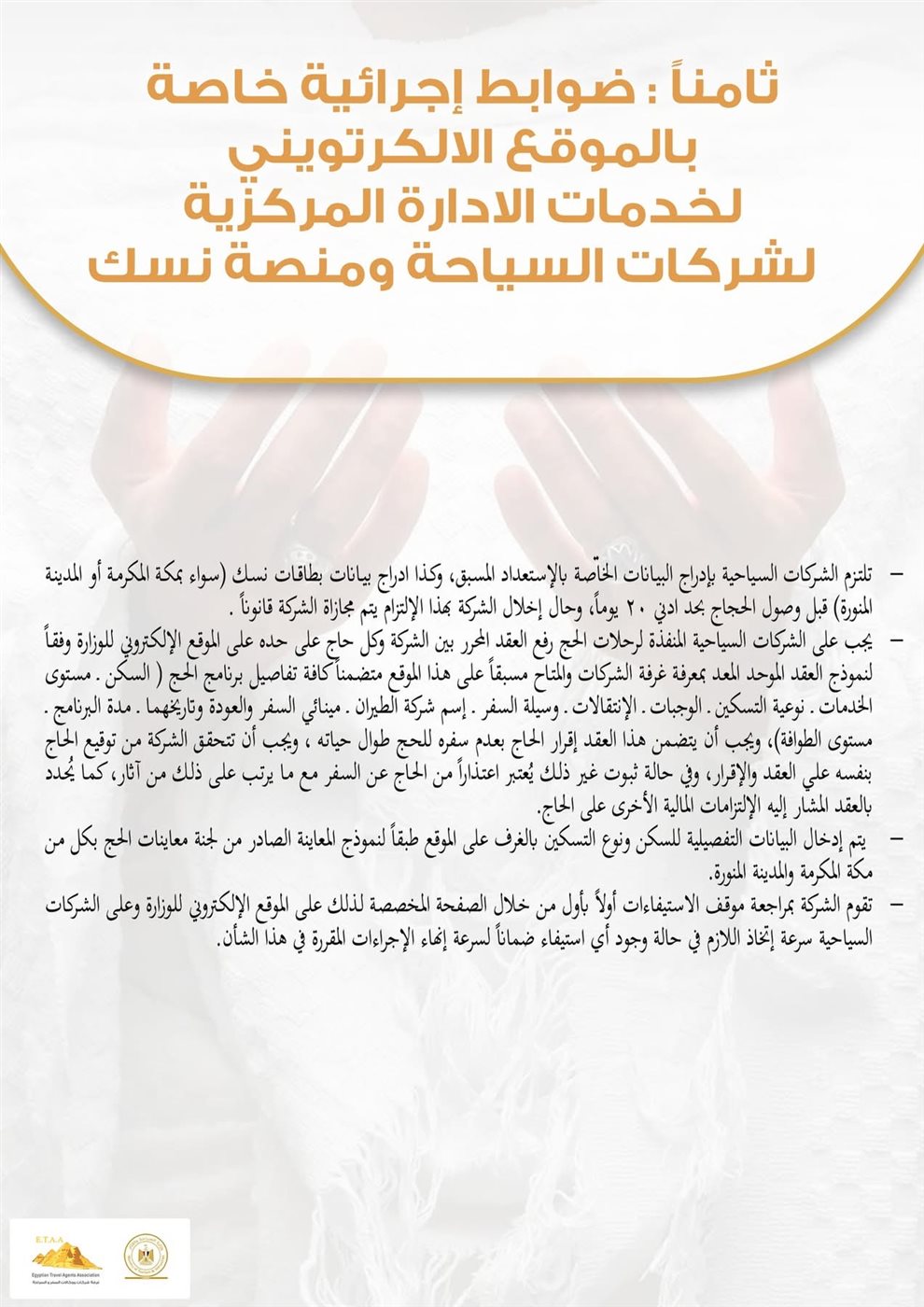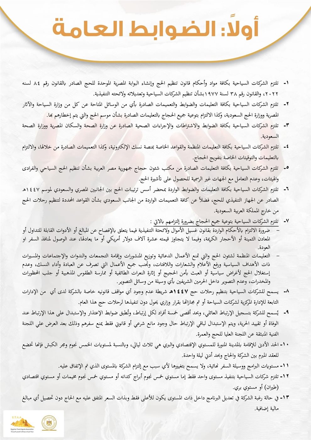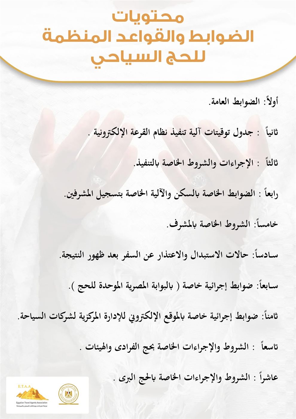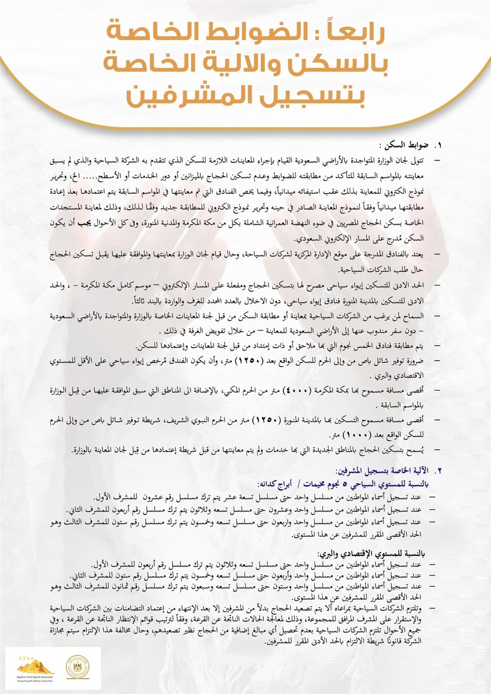 وننشر نسخة من الضوابط التى اعلنتها الوزارة والتى تعمل على رفع وتعزيز كفاءة منظومة الحج السياحي والسعي لتطويرها على نحو متكامل.