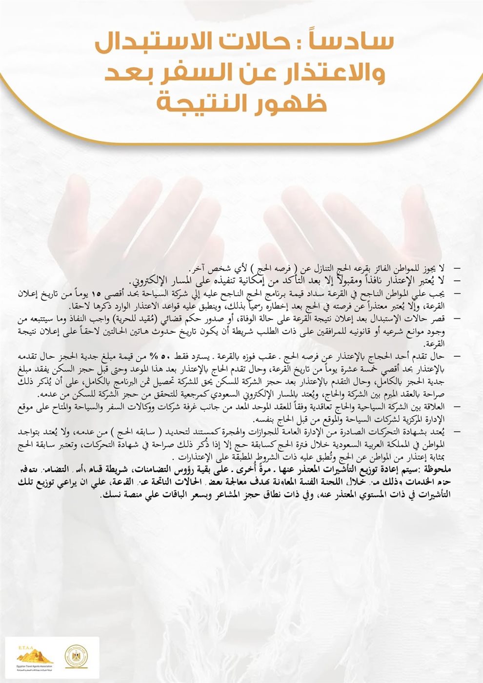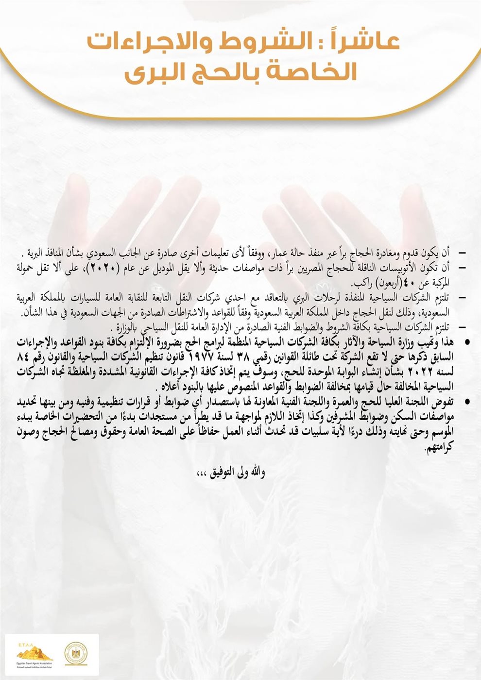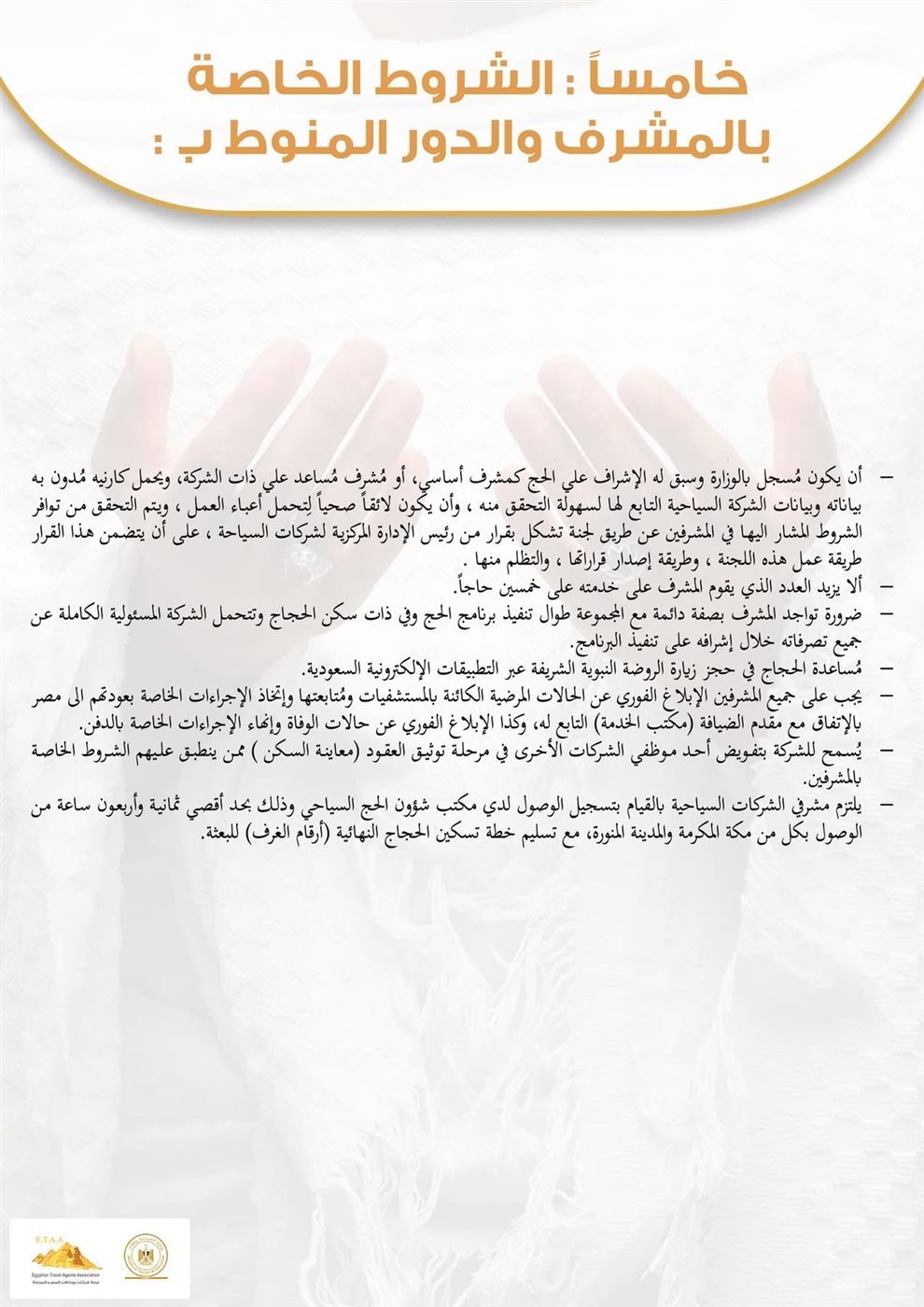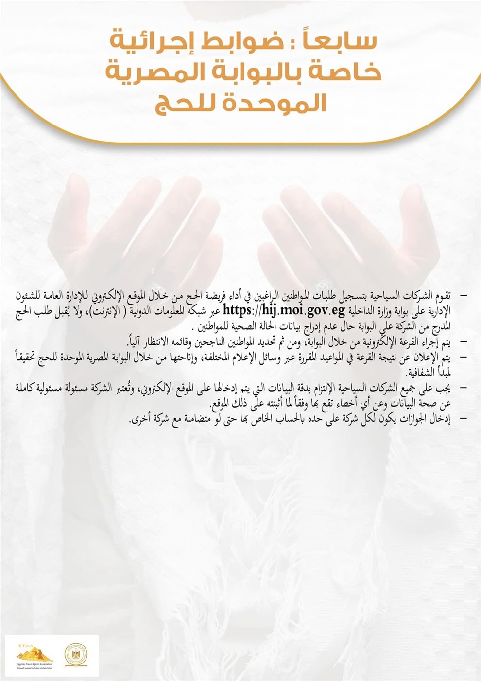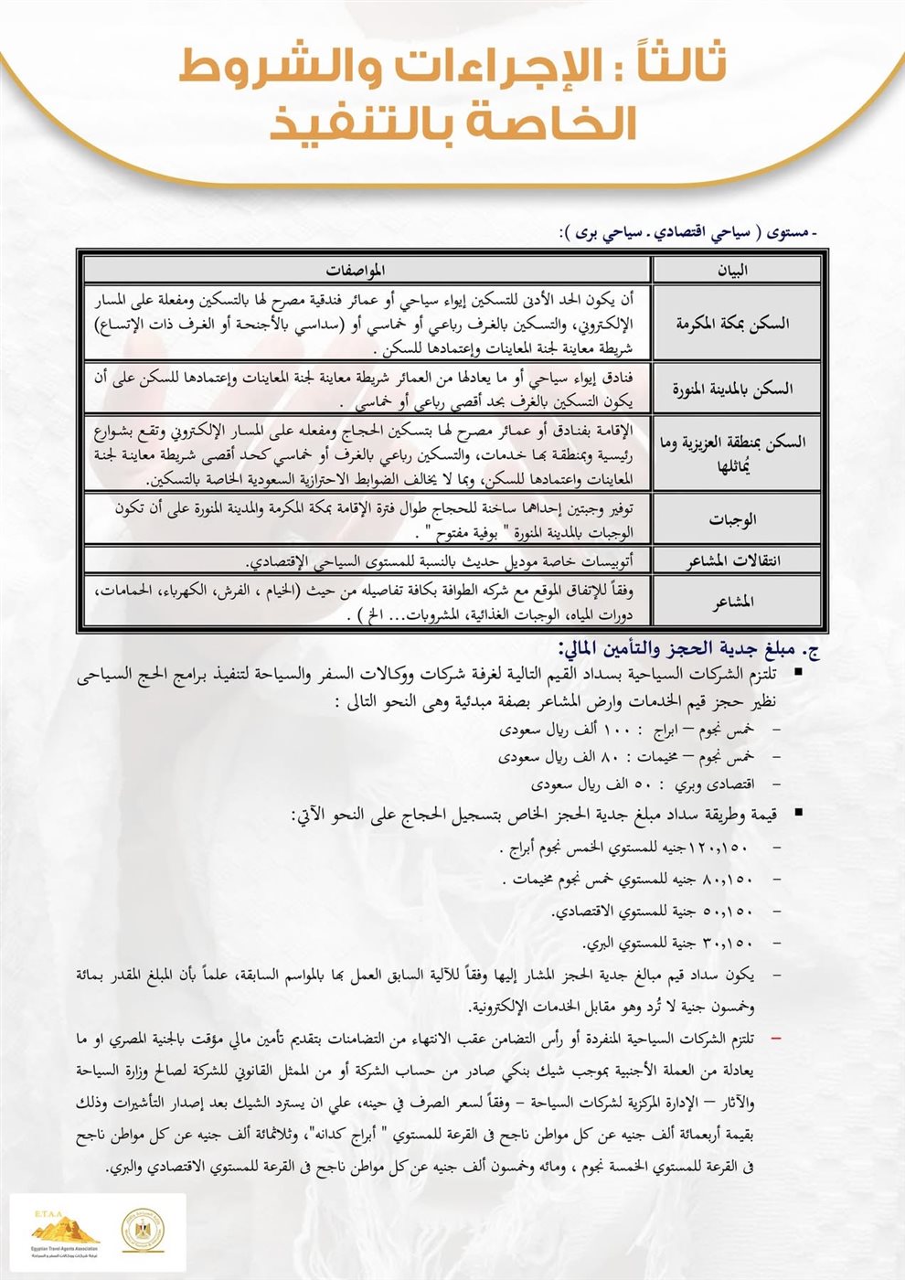 وننشر نسخة من الضوابط التى اعلنتها الوزارة والتى تعمل على رفع وتعزيز كفاءة منظومة الحج السياحي والسعي لتطويرها على نحو متكامل.