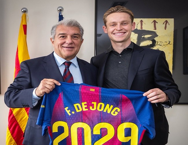 أعلن برشلونة الإسباني، مساء اليوم الأربعاء، تجديد عقد نجمه الهولندي فرينكي دي يونج ليستمر مع الفريق الكتالوني حتى صيف 2029.