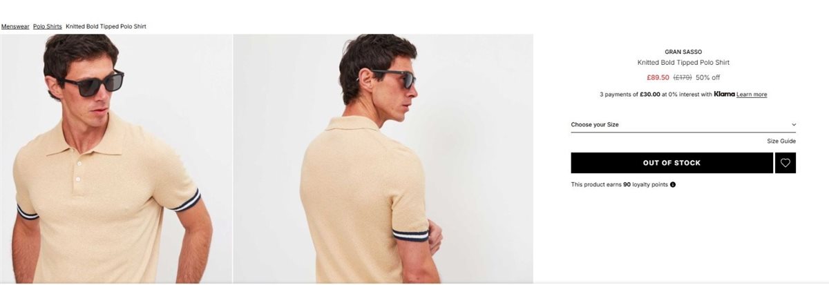 ارتدى النجم العالمي تي شيرت محبوكة من اللون الجملي بنصف أكمام ببعض ألوان الأبيض والأسود من توقيع ماركة Gran Sasso المهتمة بتصميم الأزياء المحبوكة والمريحة ويبلغ سهر التي شيرت حوالي 89 يورو.