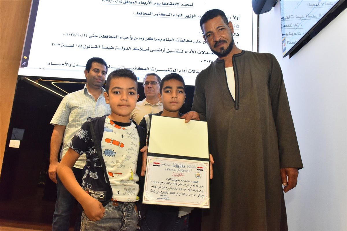 من جانبه، أعرب المواطن ميخائيل عياد عن امتنانه لتكريم المحافظ، مؤكدًا أن ما قام به واجب إنساني لا ينتظر عليه جزاءً ولا شكورًا، وحرص على التقاط صورة تذكارية مع المحافظ بصحبة أبنائه، تعبيرًا عن سعادته بهذه اللفتة الكريمة.
