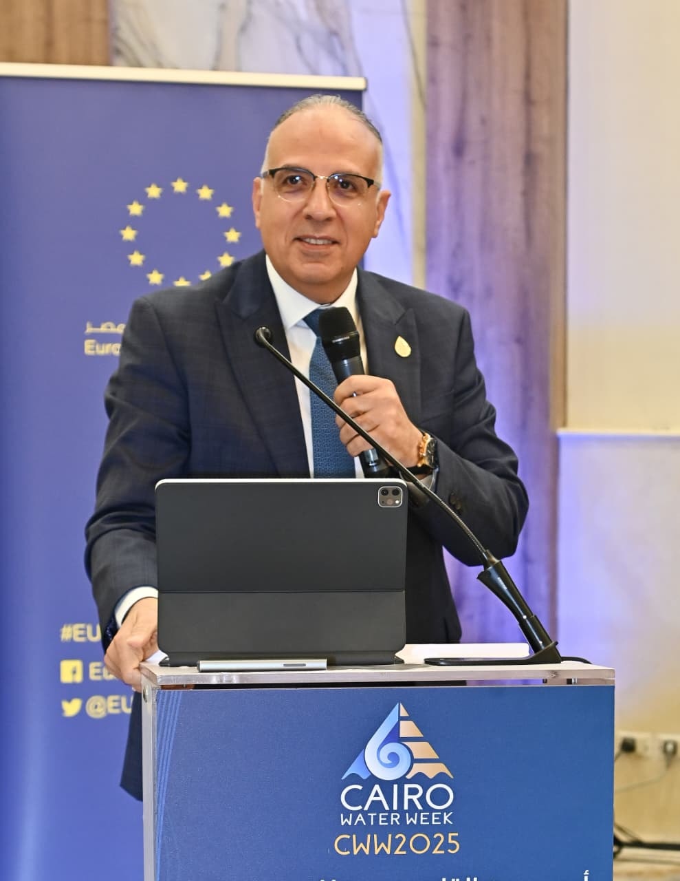 ضمن فعاليات "أسبوع القاهرة الثامن للمياه" .. شهد الدكتور هانى سويلم وزير الموارد المائية والرى، والسفيرة أنجلينا إيخهورست رئيسة بعثة الاتحاد الأوروبي في مصر، فعاليات جلسة "حملة على القد" والتى تضمنت تقييم عدد من الفيديوهات والبوسترات المقدمة من طلبة الجامعات المصرية ضمن مسابقة "حملة على القد"، حيث تنعقد المسابقة بالتعاون بين وزارة الموارد المائية والري والاتحاد الأوروبي .