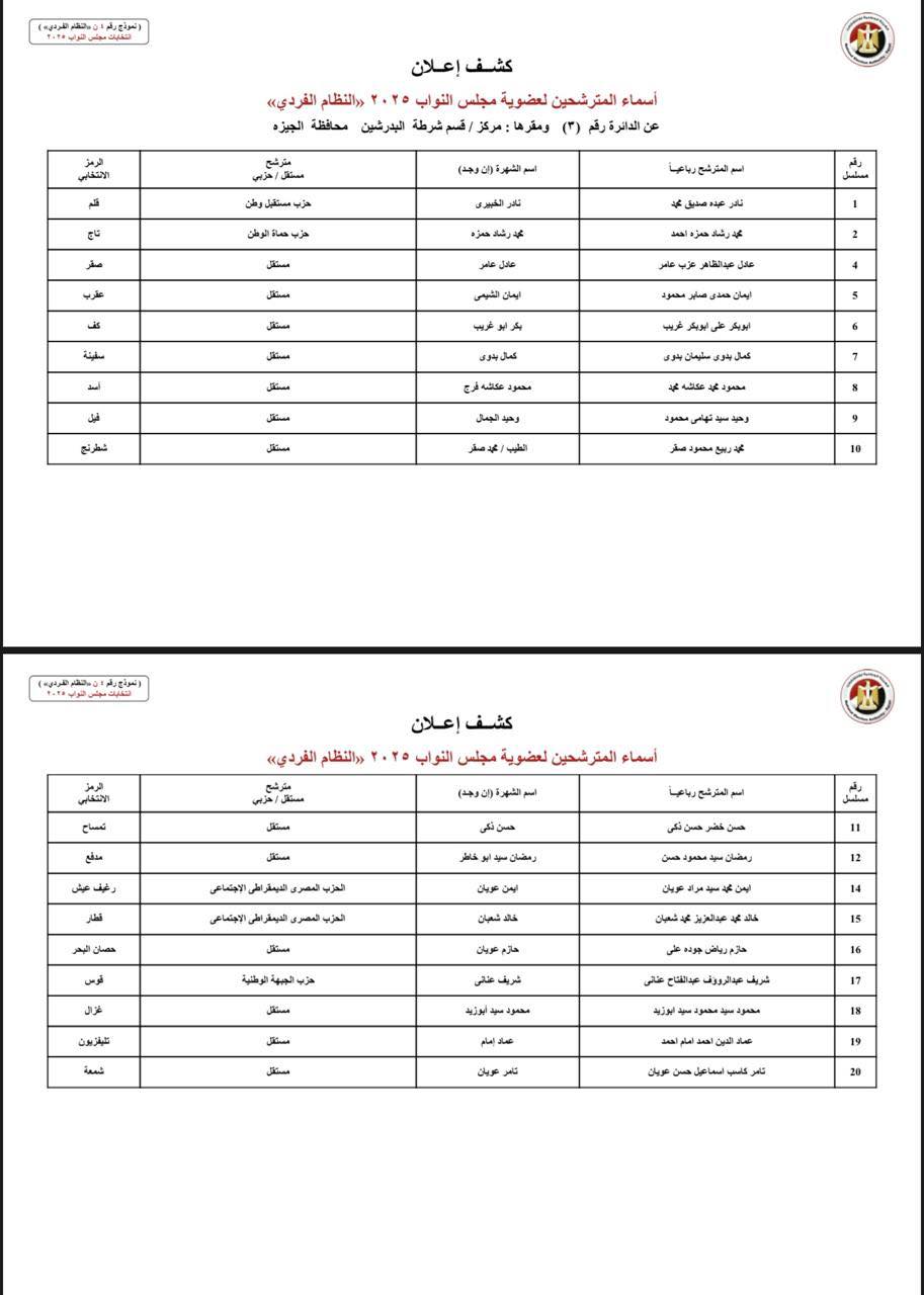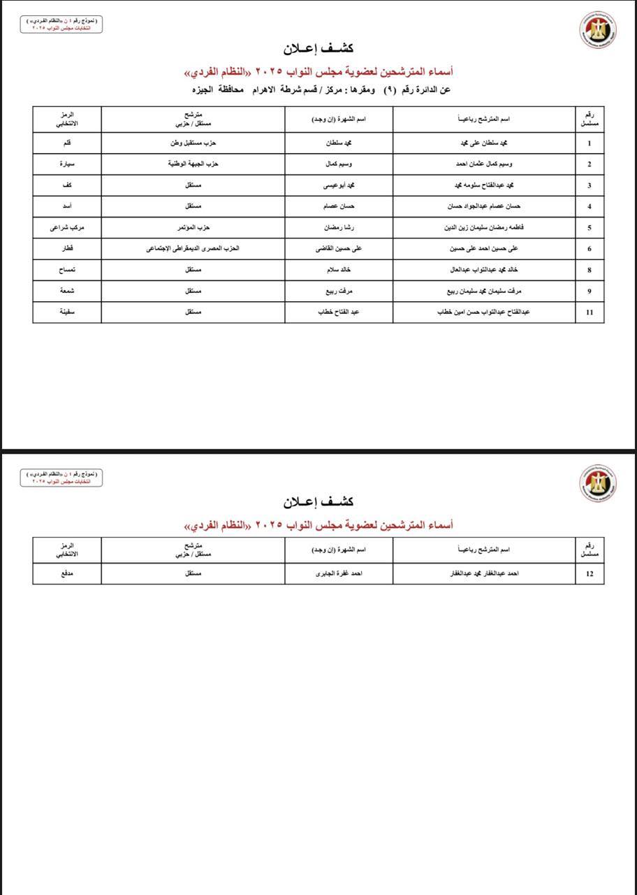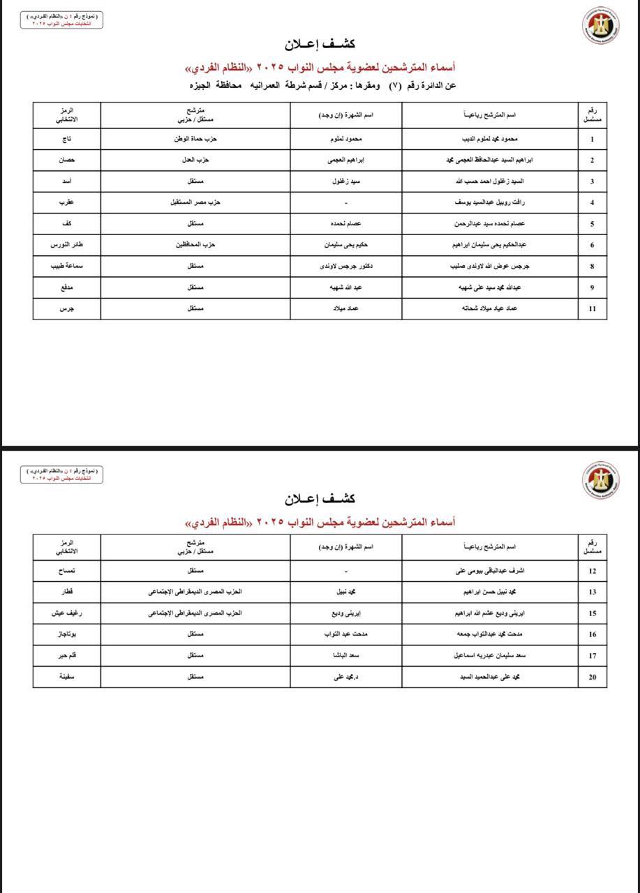 ننشر أسماء المرشحين فى انتخابات النواب بمحافظة الجيزة