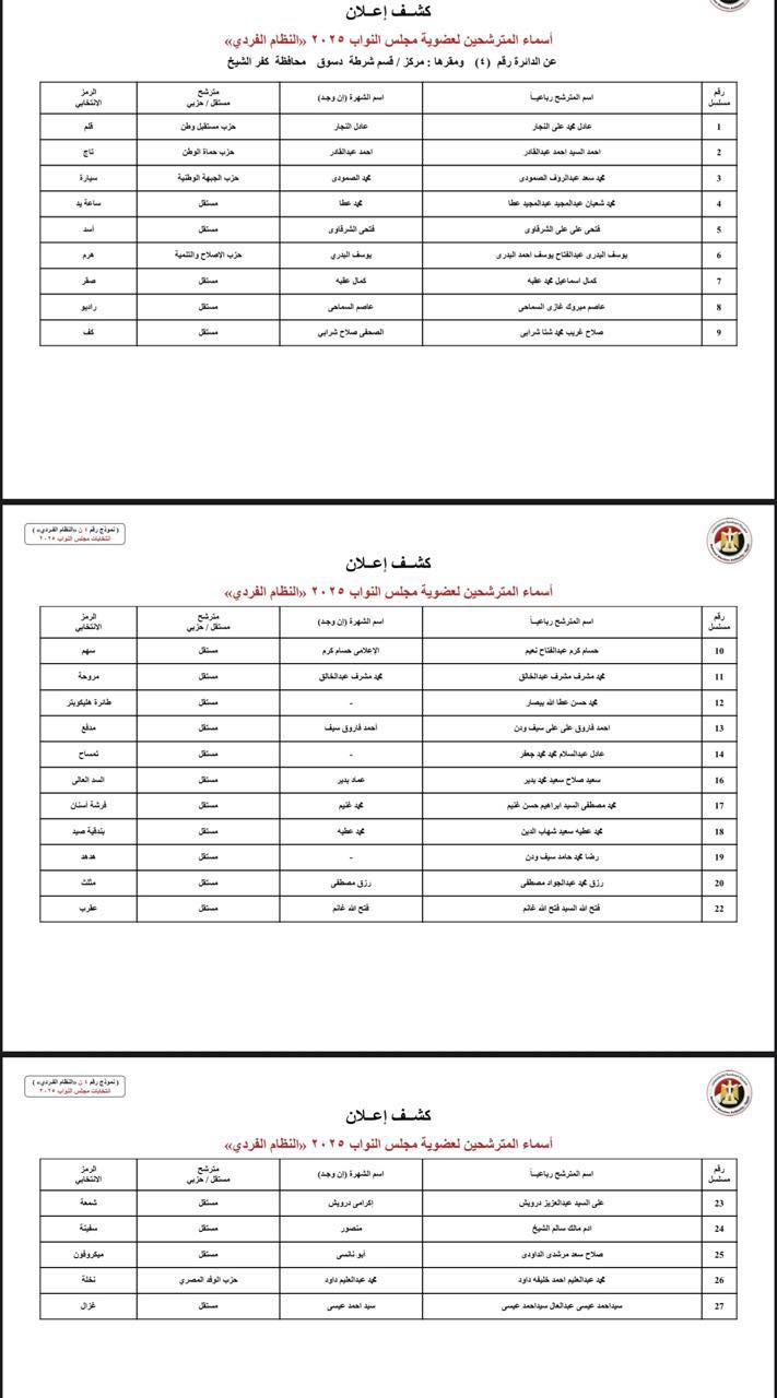 ننشر أسماء المرشحين فى انتخابات النواب بمحافظة كفر الشيخ