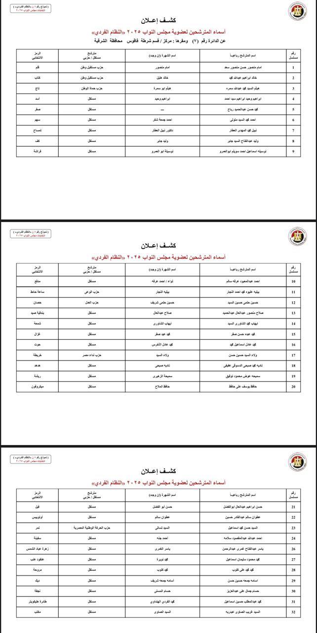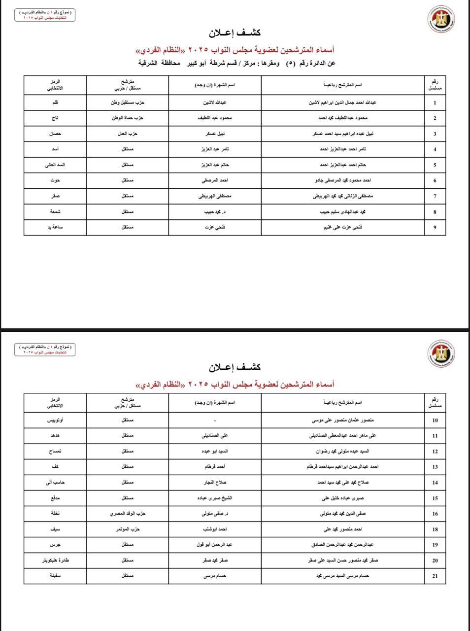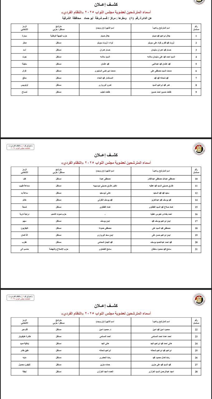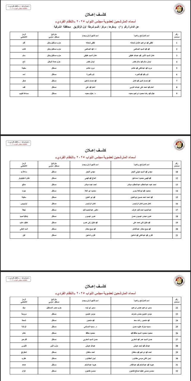 ننشر أسماء المرشحين فى انتخابات النواب بمحافظة الشرقية