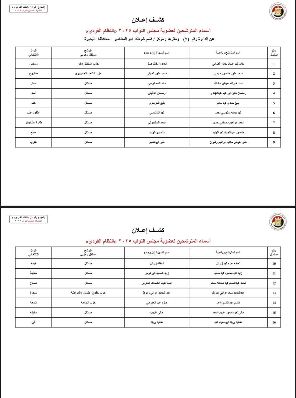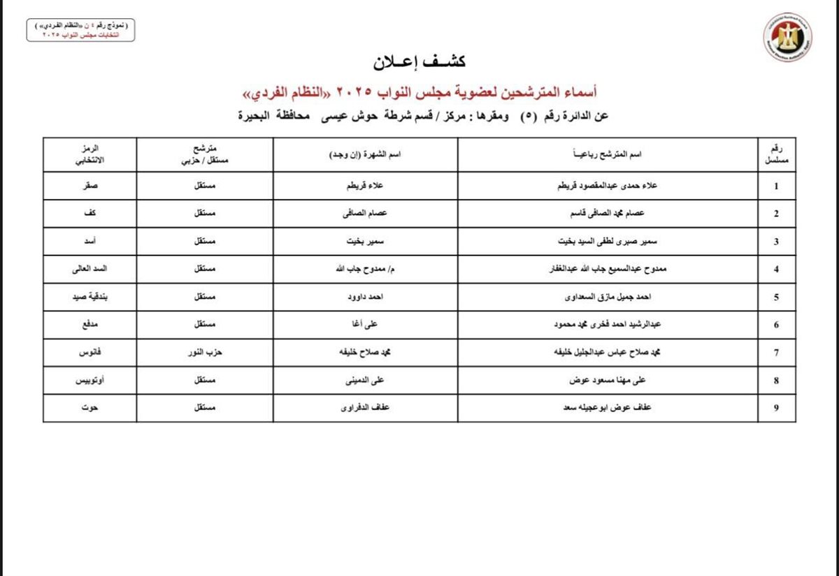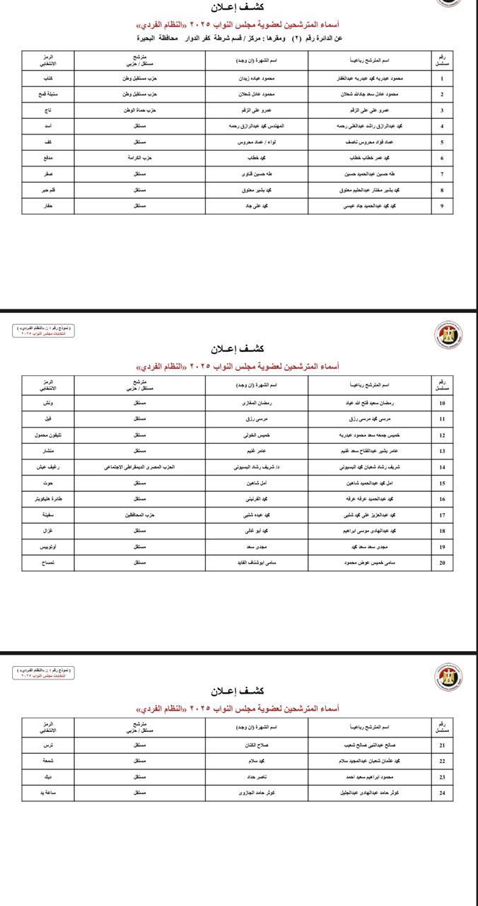 ننشر أسماء المرشحين فى انتخابات النواب بمحافظة البحيرة