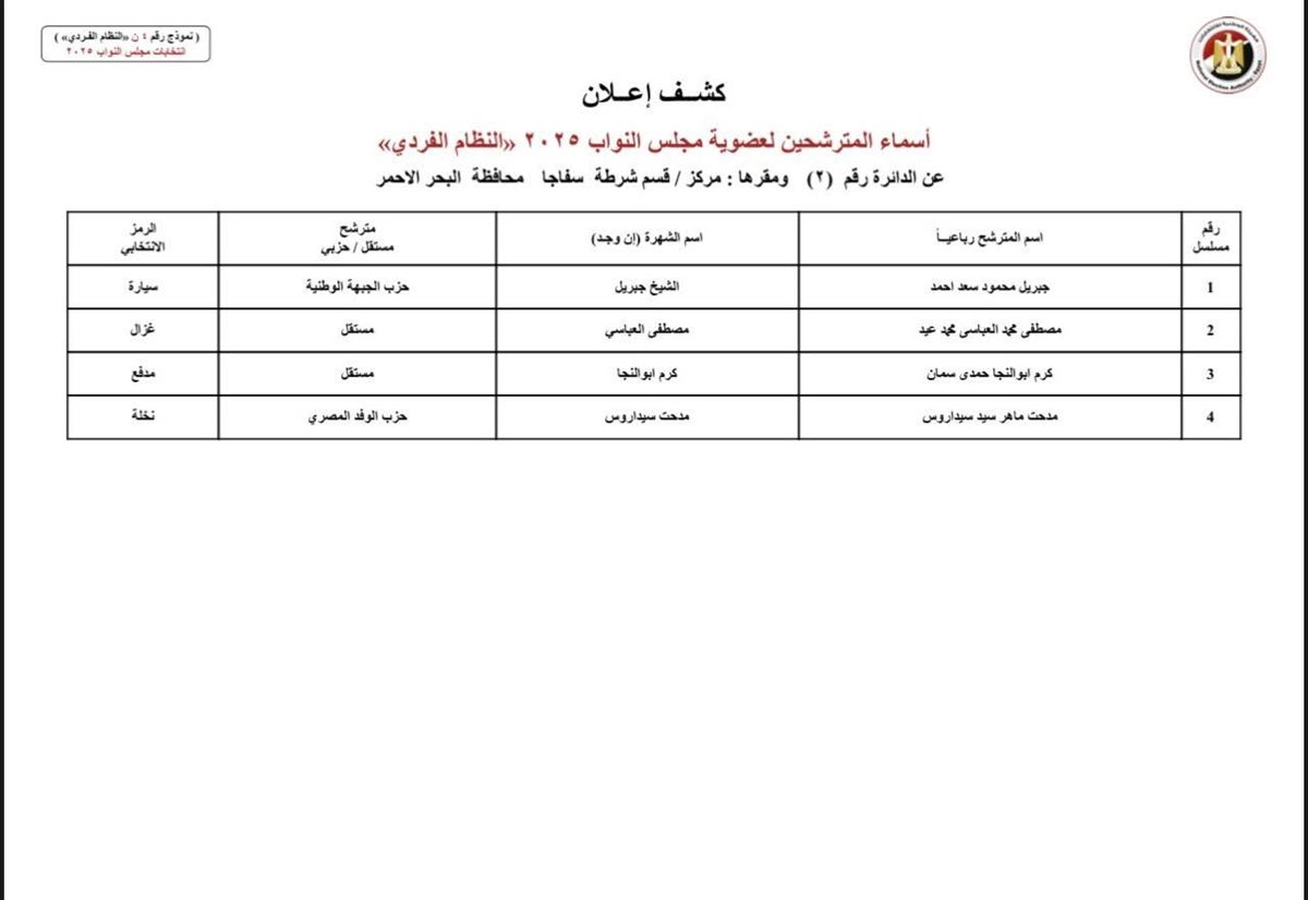 ننشر أسماء المرشحين فى انتخابات النواب بمحافظة البحر الأحمر
