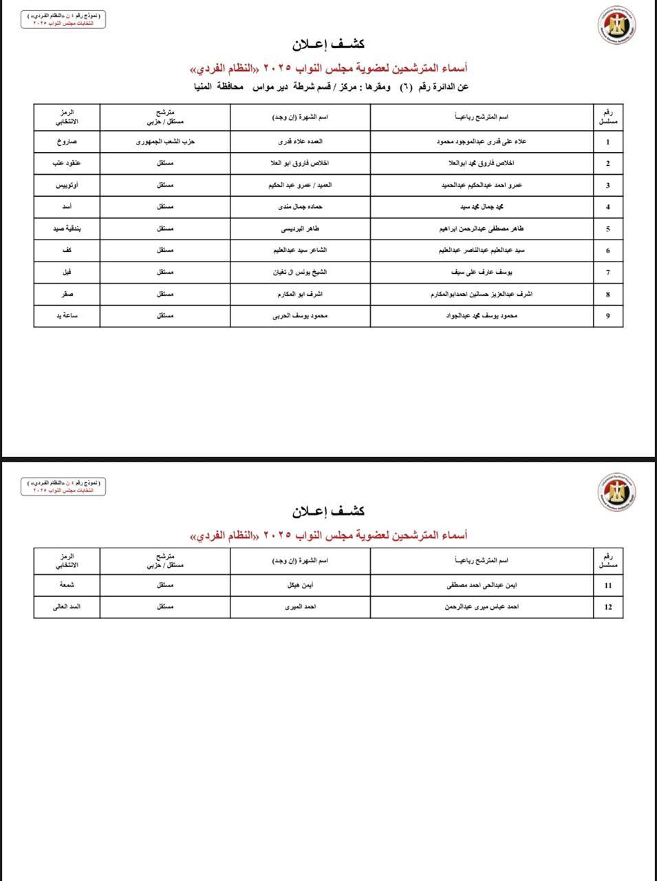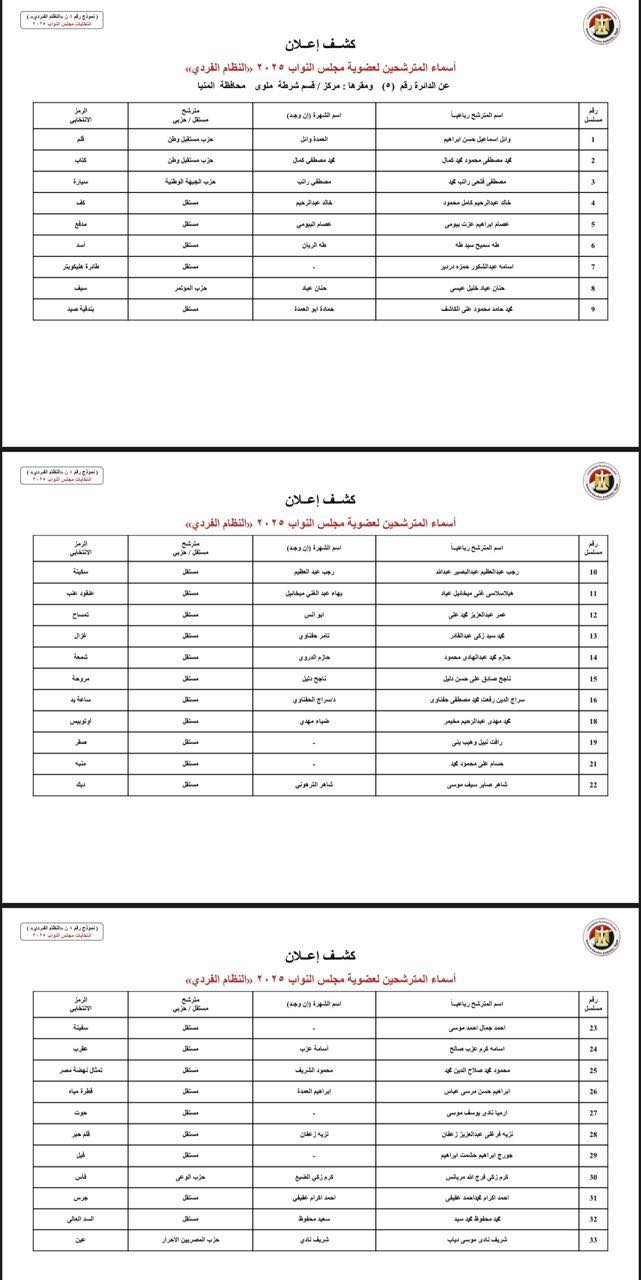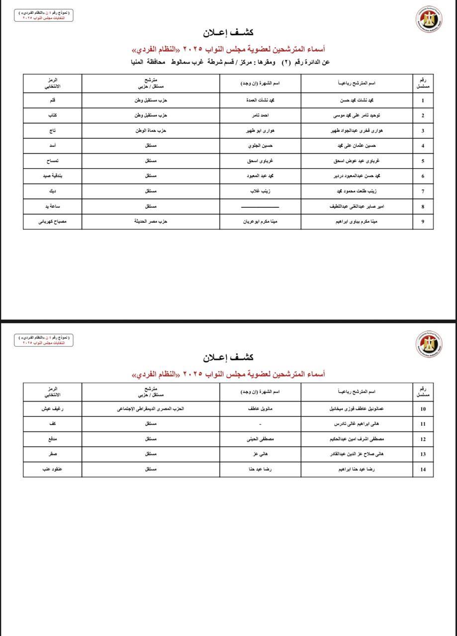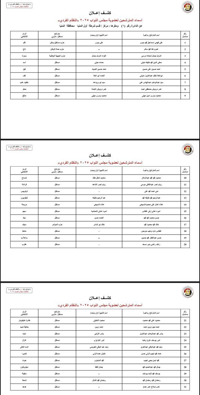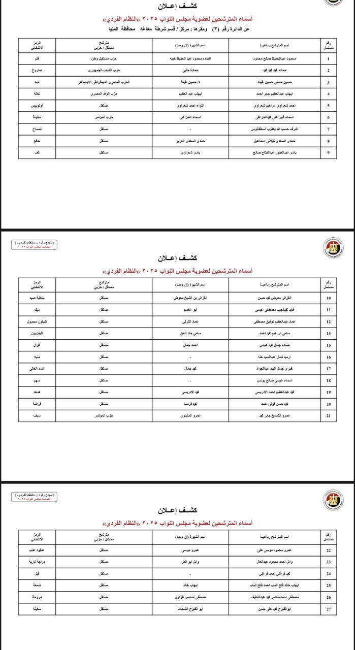 ننشر أسماء المرشحين فى انتخابات النواب بمحافظة المنيا