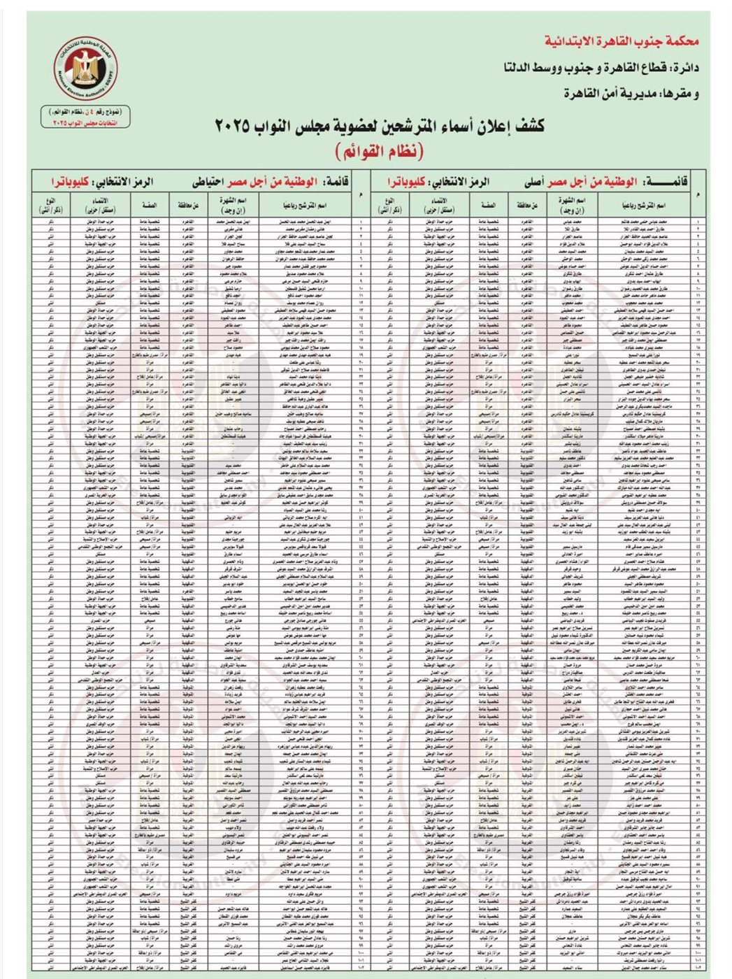وبذلك، تنفرد القائمة الوطنية من أجل مصر بالتأهل المبدئي عن القطاعات الأربعة لنظام القوائم، ما يعزز فرصها في المنافسة على مقاعد القائمة المخصصة ضمن تشكيل مجلس النواب المقبل، المقرر انتخابه وفق الجدول الزمني المُعلن من الهيئة الوطنية.