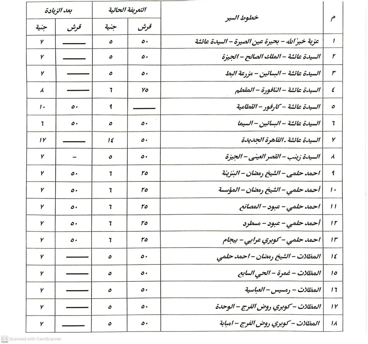 فى ضوء صدور قرار تعديل سعر البنزين والسولار ، قامت محافظة القاهرة بتعديل تعريفة ركوب سيارات السرفيس، والنقل العام، والنقل الجماعى، والأقاليم، والتاكسى الأبيض.