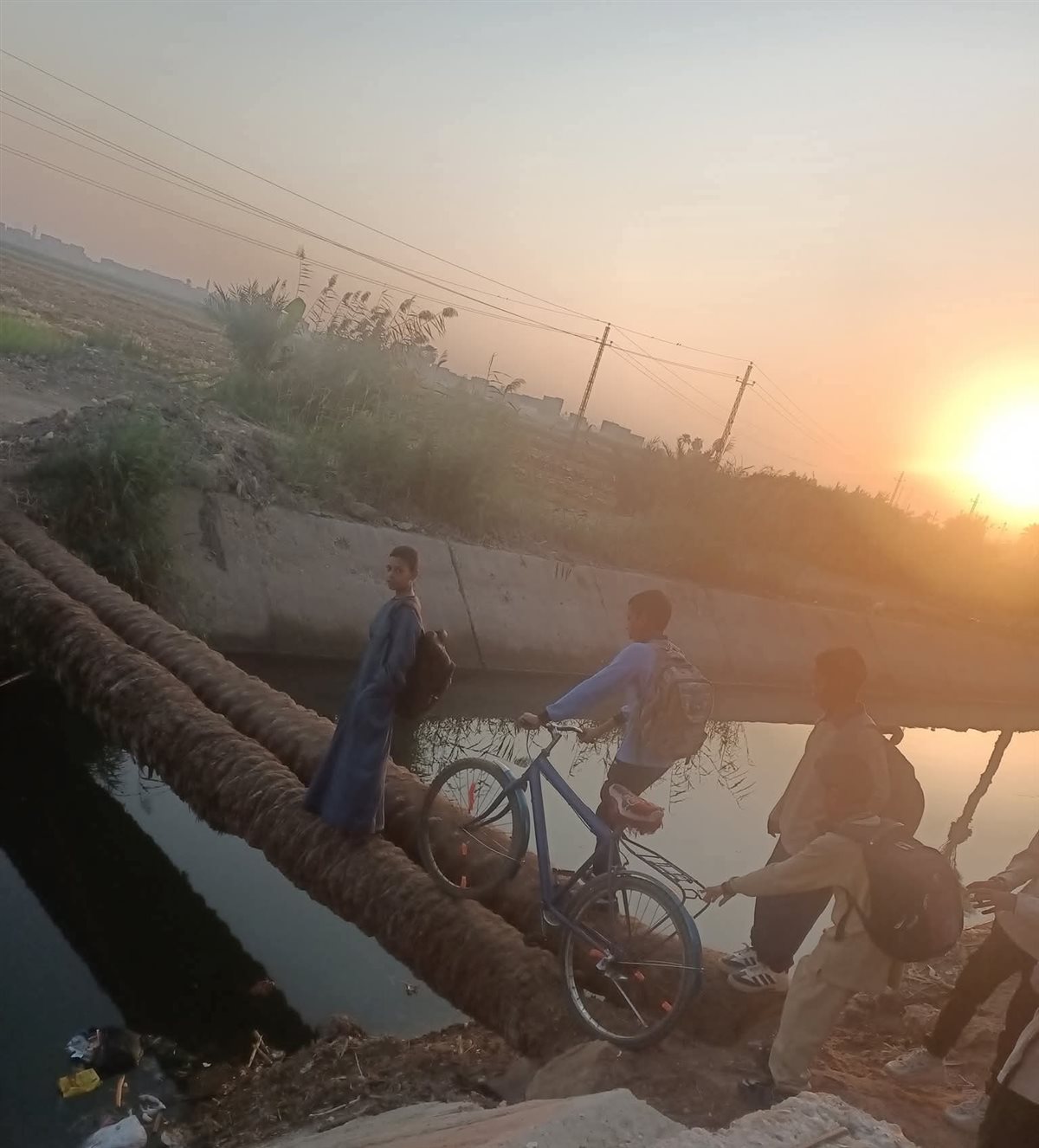 بيعدوا الترعة على جذع نخلة.. كارثة تهدد حياة تلاميذ قرية الإسكندرية بأسيوط