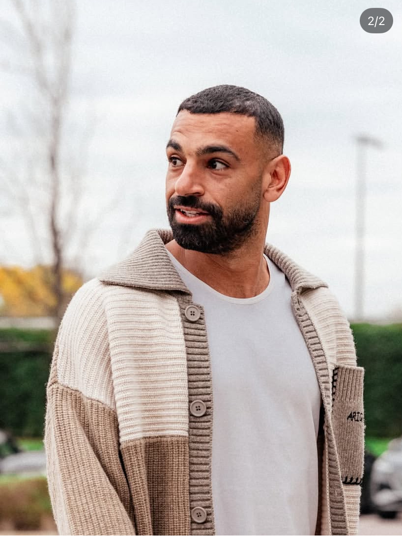 ارتدى محمد صلاح، كارديجان فرانكو بتصميم رقعات مزيج من خامة الصوف من توقيع العلامة التجارية العالمية للأزياء الجاهزة اكسل اريجاتو ويبلغ سعر إطلالته حوالي 199 يورو.