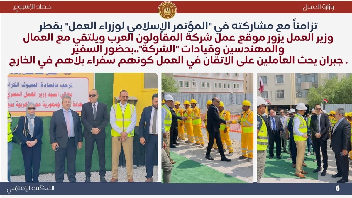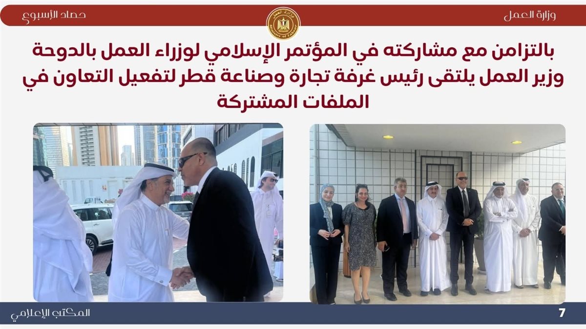 كما شارك في المؤتمر الإسلامي السادس لوزراء العمل بالدوحة، مؤكدًا أن مصر تعمل على بناء سوق عمل عصري ومتوازن يحفظ حقوق العمال وأصحاب الأعمال.