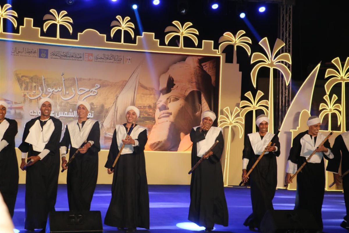 وينفذ مهرجان أسوان من خلال الإدارة العامة للمهرجانات والإدارة العامة للفنون الشعبية، بالتعاون مع إقليم جنوب الصعيد الثقافي وفرع ثقافة أسوان، ويشهد اليوم السبت عروضا متنوعة في التاسعة مساء، حيث تقدم فرقة كفر الشيخ عرضا فنيا على مسرح فوزي فوزي بأسوان، وتشارك فرقة بورسعيد بعرض فني بقصر ثقافة حسن فخر الدين، وتقدم فرقة ملوي عروضها بقصر ثقافة الرديسية، وتعرض فرقة الأنفوشي في قصر ثقافة السباعية، فيما تقدم فرقة سوهاج عروضها بقصر ثقافة كوم أمبو، وتشارك فرقة الأقصر على مسرح مكتبة الطفل بدراو، وتعرض فرقة العريش بقصر ثقافة توشكى، أما فرقة أسوان فتقدم فقراتها المميزة بميدان المحطة بأسوان.