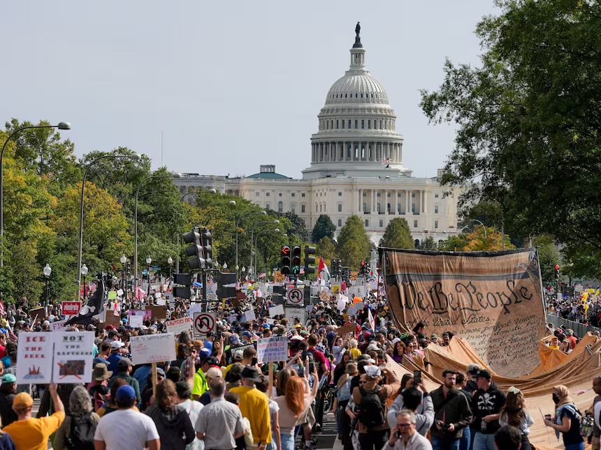 وتعد هذه التعبئة الجماهيرية الثالثة منذ عودة ترامب إلى البيت الأبيض في يناير، وتأتي على خلفية إغلاق الحكومة الذي لم يغلق البرامج والخدمات الفيدرالية فحسب، بل يختبر توازن القوى الأساسي مع مواجهة السلطة التنفيذية العدوانية للكونجرس والمحاكم بطرق يحذر المنظمون من أنها انزلاق نحو الاستبداد الأمريكي.