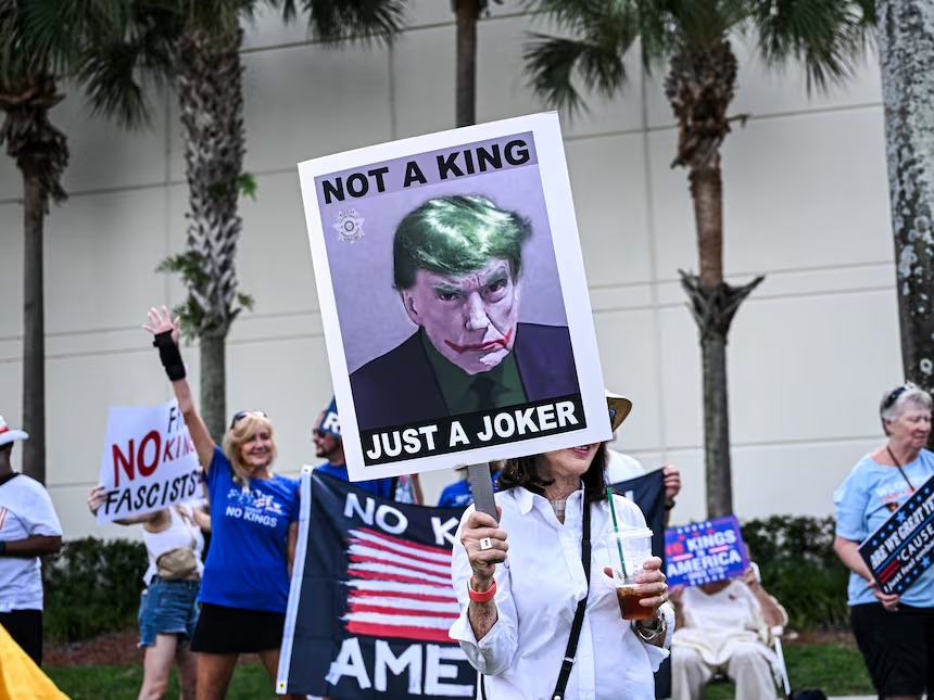 وفقًا لقناة “nbcnews” الأمريكية، يتواجد ترامب في بالم بيتش بولاية فلوريدا هذا الأسبوع وليس لديه أي أحداث عامة في جدول أعماله اليوم، مما يعني أننا لن نراه على الكاميرات بينما يتجمع الآلاف من المتظاهرين في احتجاجات "لا للملوك" في جميع أنحاء البلاد.