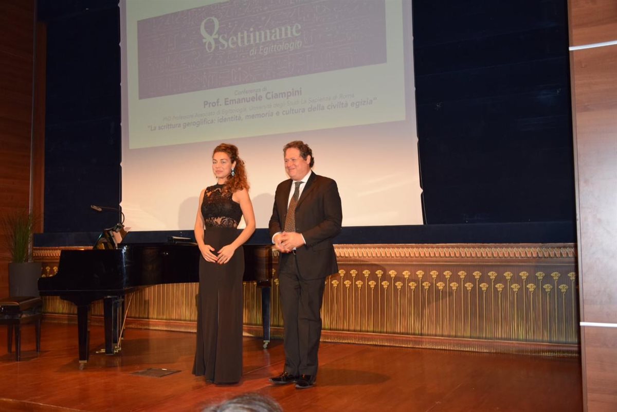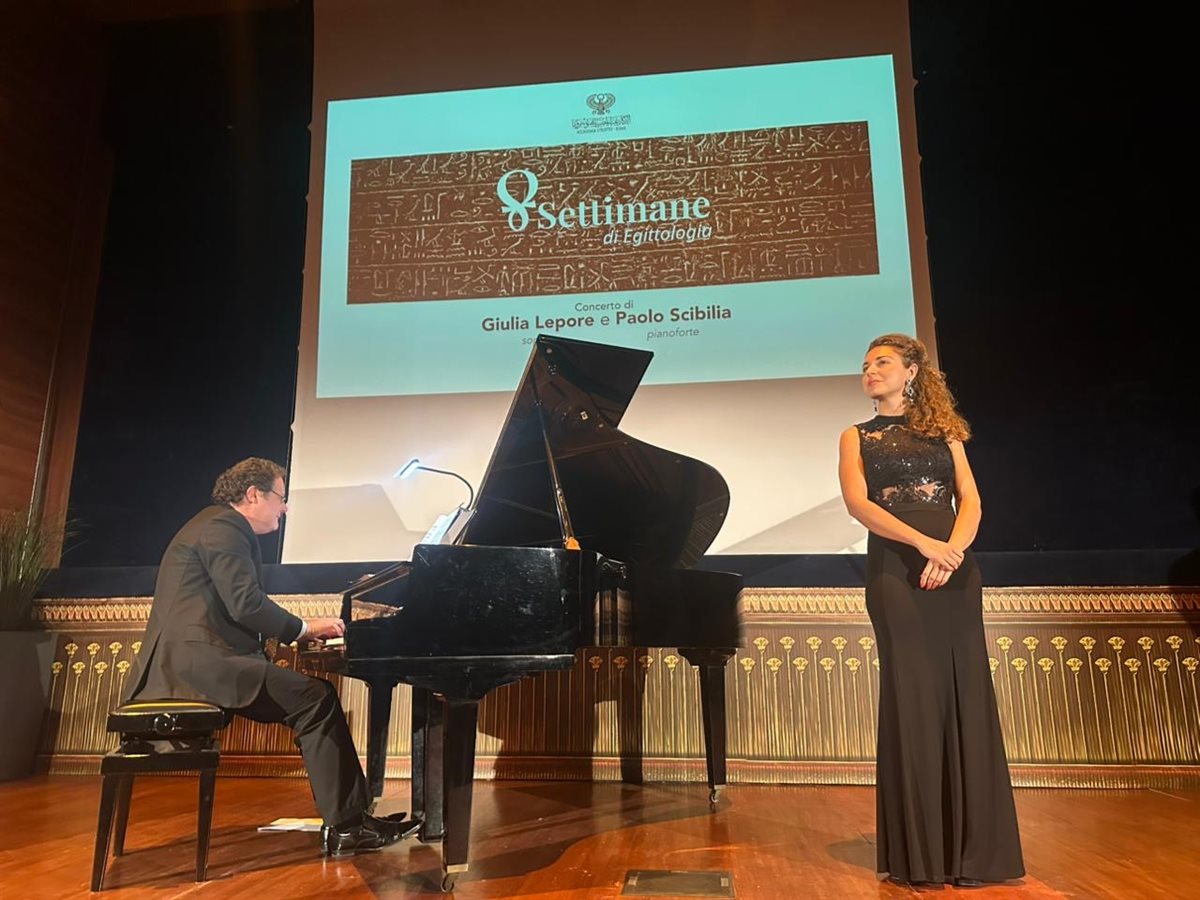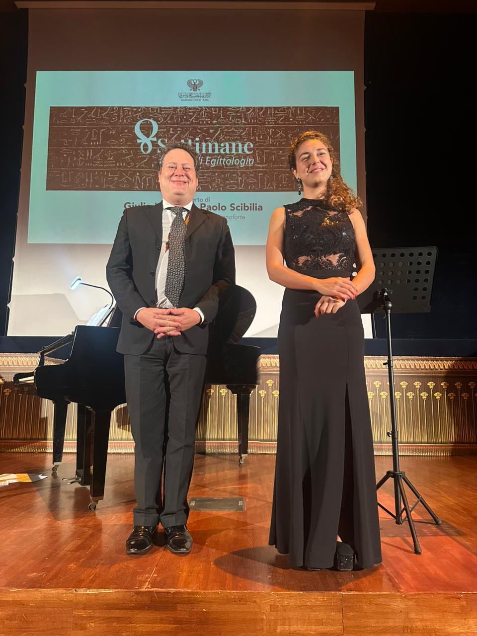 عقب المحاضرة العلمية، دعت الأستاذة الدكتورة رانيا يحيى، مديرة الأكاديمية المصرية للفنون بروما، الحضور للاستمتاع بحفل موسيقي مميز أحياه كل من المايسترو باولو شيبيليا، عازف البيانو الشهير ومدير الأوركسترا النسائية الدولية بمدينة سورينتو، والمغنية السوبرانو الإيطالية المتألقة جوليا ليبوري والذين حضروا خصيصاً من مدينة سورينتو لإحياء تلك الأمسية.