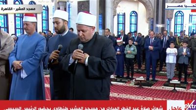 ويؤدي الرئيس عبد الفتاح السيسي صلاة عيد الفطر المبارك من مسجد المشير طنطاوي، وسط حضور مكثف للمواطنين وأهالي الشهداء، وقيادات القوات المسلحة المصرية.